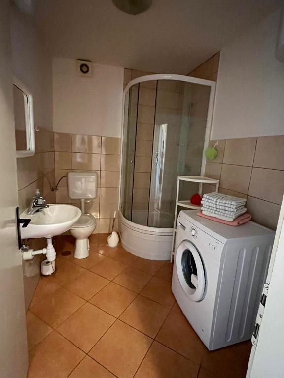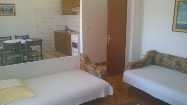 Apartamenty Ruža znajdują się w domu rodzinnym na 1. i 3. piętrze. Dom położony jest 10 min. spacerem od centrum miasta i dużej miejskiej plaży. W pobliżu znajdują się supermarkety, restauracje, kawiarnie, bank i stacja benzynowa. Apartament A4 2 o powierzchni 70 metrów kwadratowych, posiada dwie sypialnie z łóżkami małżeńskimi, salon z 2 dostawkami i telewizorem, łazienka z pralką. Apartament posiada balkon z pięknym widokiem na morze, miasto Omiš i wyspę Brač. Apartament A2 2 o powierzchni 70 m2 składa się z dużego pokoju z podwójnym łóżkiem, kuchni i salonu, które znajdują się na jednym obszarze o powierzchni 30 m2. W salonie znajdują się 2 dodatkowe łóżka i telewizor. Apartament posiada duży taras z pięknym widokiem.