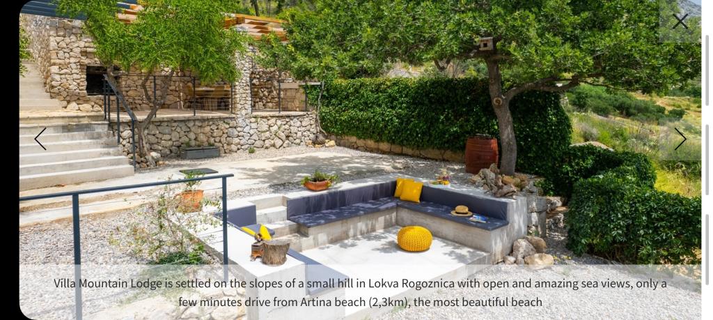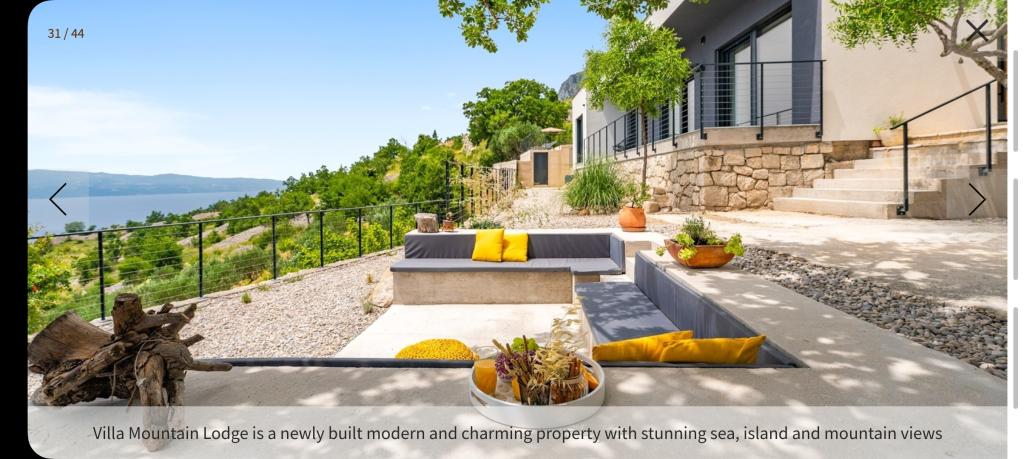 NOWOŚĆ Villa Mountain Lodge z widokiem na morze Willa z 4 sypialniami, basenem z podgrzewaną wodą i panoramicznym widokiem na morze. Villa Mountain Lodge to nowo wybudowana, nowoczesna i urocza posiadłość z przepięknym widokiem na morze, wyspę i góry oraz z bardzo uroczym otoczeniem. W pełni klimatyzowana willa z 4 sypialniami, bezpłatnym WiFi, przestronną częścią dzienną, w pełni wyposażoną kuchnią, uroczą jadalnią na świeżym powietrzu i kącikiem wypoczynkowym, podgrzewanym basenem, położona w spokojnej okolicy na stokach Lokva Rogoznica, zaledwie 2,3 km od plaża, 900m od restauracji. Jest zorganizowana na parterze z 184 m2 powierzchni użytkowej na prywatnej działce o powierzchni 1069 m2.