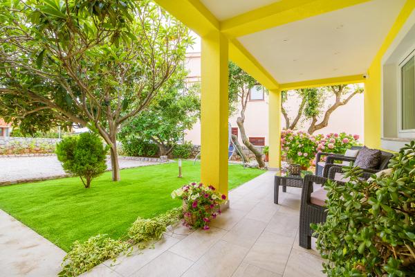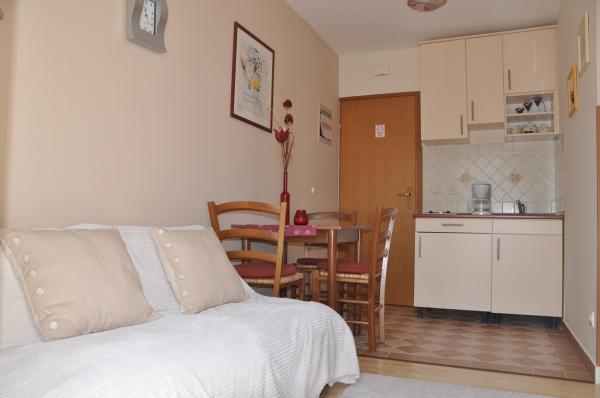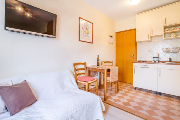 To jeden z apartamentów, jakich można sobie życzyć – cicha lokalizacja, parking na podwórku, morze oddalone o około 250 metrów, a do pięknej, kamienistej plaży można zejść ścieżką przez niewielki las. Morze jest czyste, a co najważniejsze, nie ma tu tłumów. Nie polecamy go małym dzieciom ze względu na brak łagodnego zejścia do morza. Apartament lśni czystością, jest schludny i na każdym kroku widać, jak bardzo gospodarze dbają o każdego gościa. Niezależnie od potrzeb, dyskretni gospodarze dołożą wszelkich starań, aby zapewnić Państwu wszystko, czego potrzeba do udanego wypoczynku. Jednym słowem, to wspaniały apartament na spokojny i cichy wypoczynek.