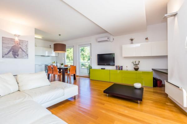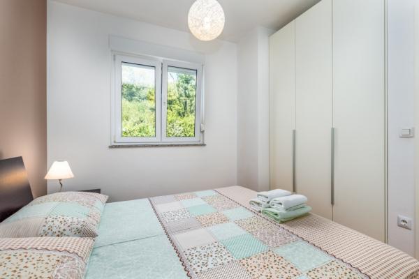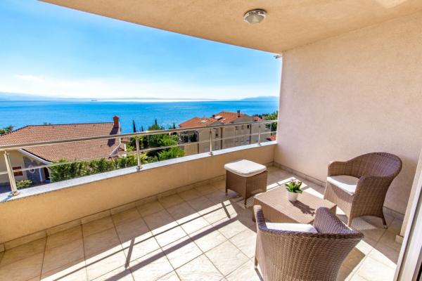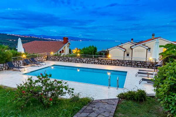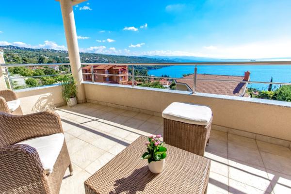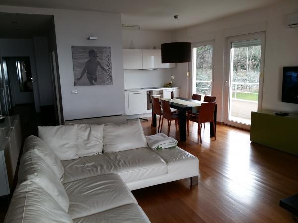 Apartament znajduje się w spokojnej części Opatija, zaledwie 400 m od pierwszej plaży. Jest bardzo nowoczesny i luksusowo urządzony z widokiem na cały Kwarner. Mieszkanie ma duży taras, na którym można się cieszyć. W ogrodzie willi znajduje się basen z leżakami. Opatija ma piękną promenadę, która rozciąga się od Volosko do Lovran. W pobliżu znajdują się wyspy Cres, Krk i parki narodowe Brijuni, Risnjak i park przyrody Ucka, które można odwiedzić podczas pobytu w apartamencie. Mieszkanie ma duży salon z kuchnią i jadalnią, dwie sypialnie, łazienkę, toaletę i korytarz. Zaletą tego mieszkania jest to, że w tej willi mieszkają tylko dwie osoby i zasadniczo nie ma nikogo przy basenie, dzięki czemu można cieszyć się cały dzień sam.