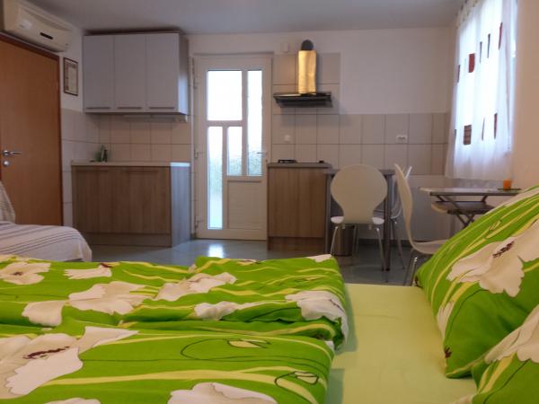Apartamenty Carmen jest usytuowany na parterze domu i każdy ma swoje własne wejście, na zewnątrz taras, który jest dostępny tylko dla niego. Nowoczesny wystrój, zdominowany przez przyjemnej zielonej tonacji kolorów elewacji, ale wystrój wnętrz. W pełni umeblowane i dobrze wyposażone apartamenty. To jest 300 m npm, w odległości 8 km od Opatija, 8 km od rzeki. Orientacja jest od morza do Słowenii, a jego odległość 5 km od morza daje gościom komfortowe zakwaterowanie w kompletnej ciszy i nocy sam. Dom położony jest na niewielkim wzgórzu tuż obok lasu, gdzie można chodzić i spotkać wiewiórkę czy dzięcioł. Obok domu jest kosz, gdzie można grać w koszykówkę lub piłkę nożną z rodziną. Mieszkanie znajduje się 500 m, około 15 minut spacerem od głównej drogi, gdzie linia autobus co godzinę jazdy do morza. W centrum Jušići posiada sklepy, kawiarnie, apteka, salon fryzjerski i kosmetyczny oraz około 3 km od Matulji kierunku morza jest coś jeszcze trzeba.