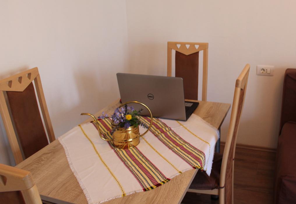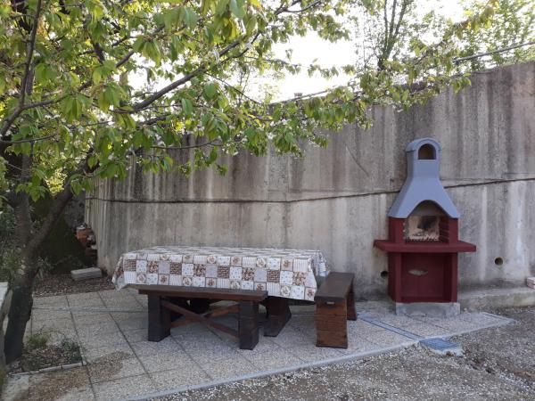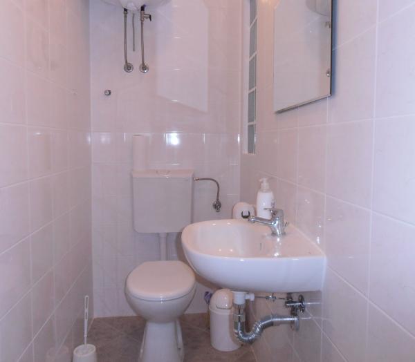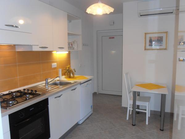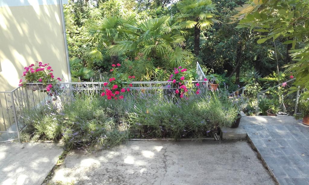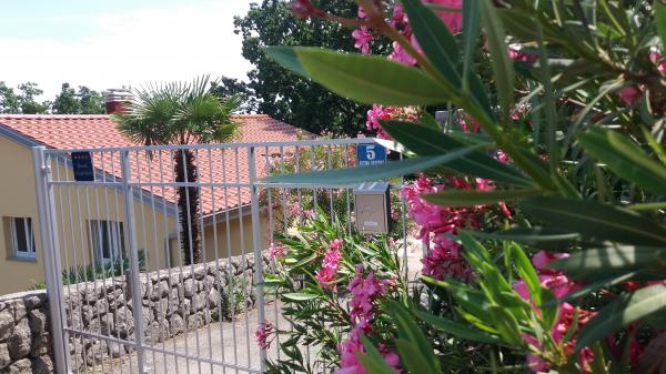 Miejsca parkingowe znajdują się na podwórzu, kilka metrów od wejścia. Do drzwi wejściowych prowadzą tylko 3 stopnie. Pozycja: od strony wejścia - parter od strony morza - 2 piętro Na piętrze znajdują się 2 apartamenty, pozostała część domu jest użytkowana prywatnie. Sąsiednie domy nie są zbyt blisko. Jest dużo zieleni.