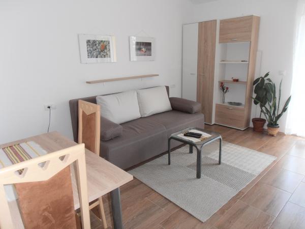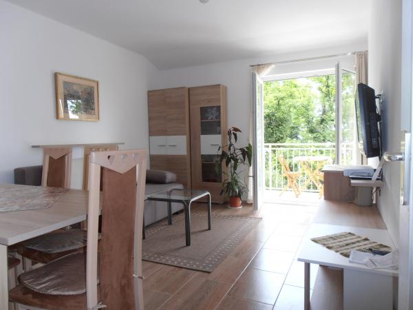 Dwa nowo wybudowane i nowocześnie wyposażone apartamenty w Opatiji (2016), blisko morza i Villa Ariston, niedaleko Grand Hotelu Adriatic i Thalassotherapy, w otoczeniu bujnej zieleni. Własny parking. Każda sypialnia posiada łazienkę. Certyfikat energetyczny klasy A. Apartament A1 posiada pokój dzienny z wyjściem na balkon, wyposażony w rozkładaną sofę (łóżko dla 2 osób), wyposażoną kuchnię ze zmywarką, sypialnię (łóżko dla 2 osób), łazienkę z wanną. toaleta i prysznic oraz osobna toaleta. Dzięki temu każdy pokój ma własną toaletę. Apartament A2 posiada wyposażoną kuchnię ze zmywarką, pokój dzienny z wyjściem na balkon, rozkładaną sofę (łóżko dla 2 osób), 2 sypialnie (w każdej z łóżkiem dla 2 osób). Każdy pokój posiada własną toaletę: 2 łazienki (jedna z wanną i toaletą, druga z klasyczną wanną i toaletą) oraz osobna toaleta.