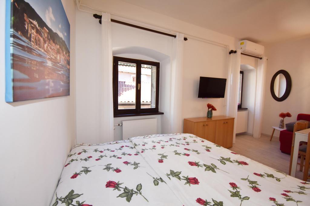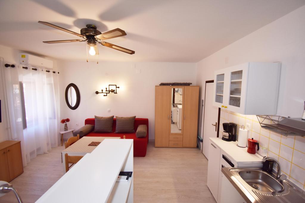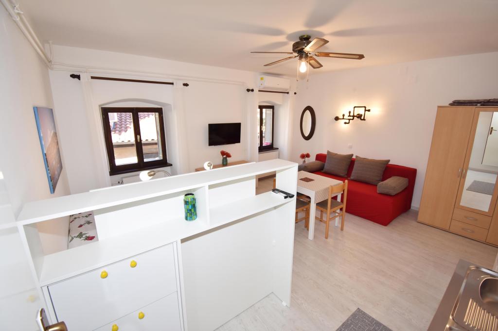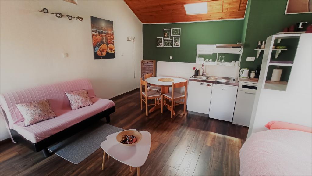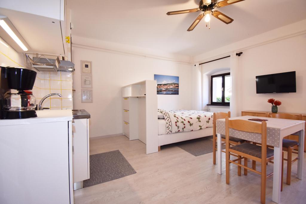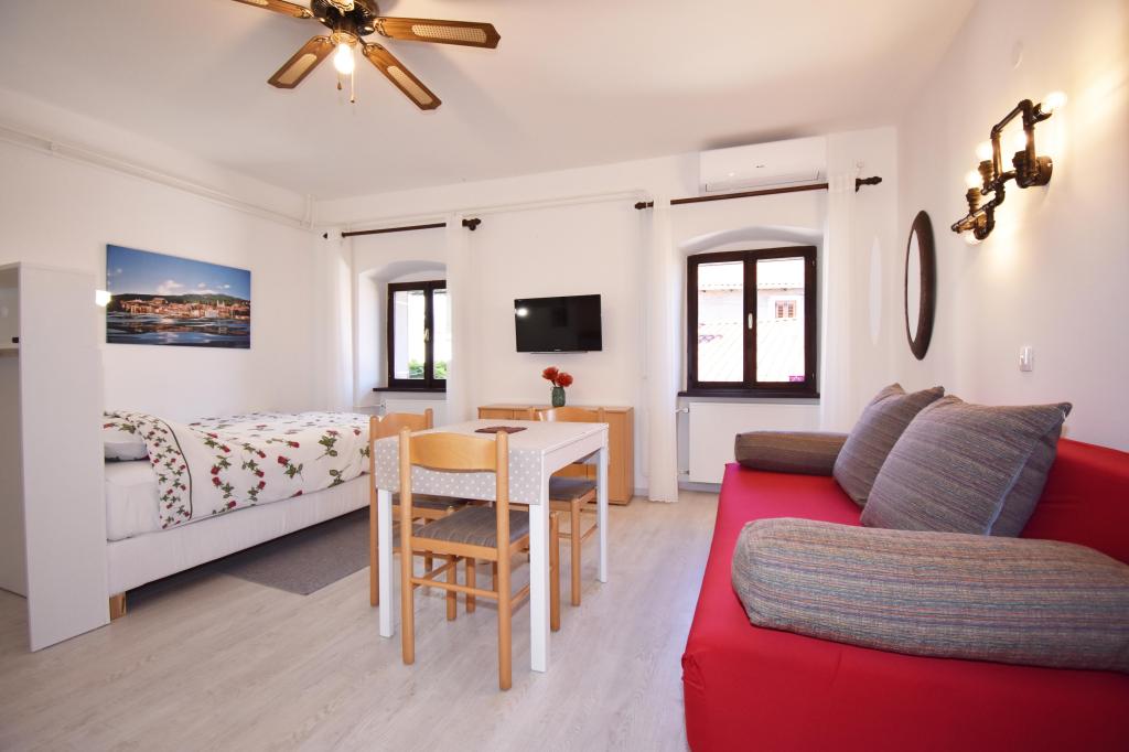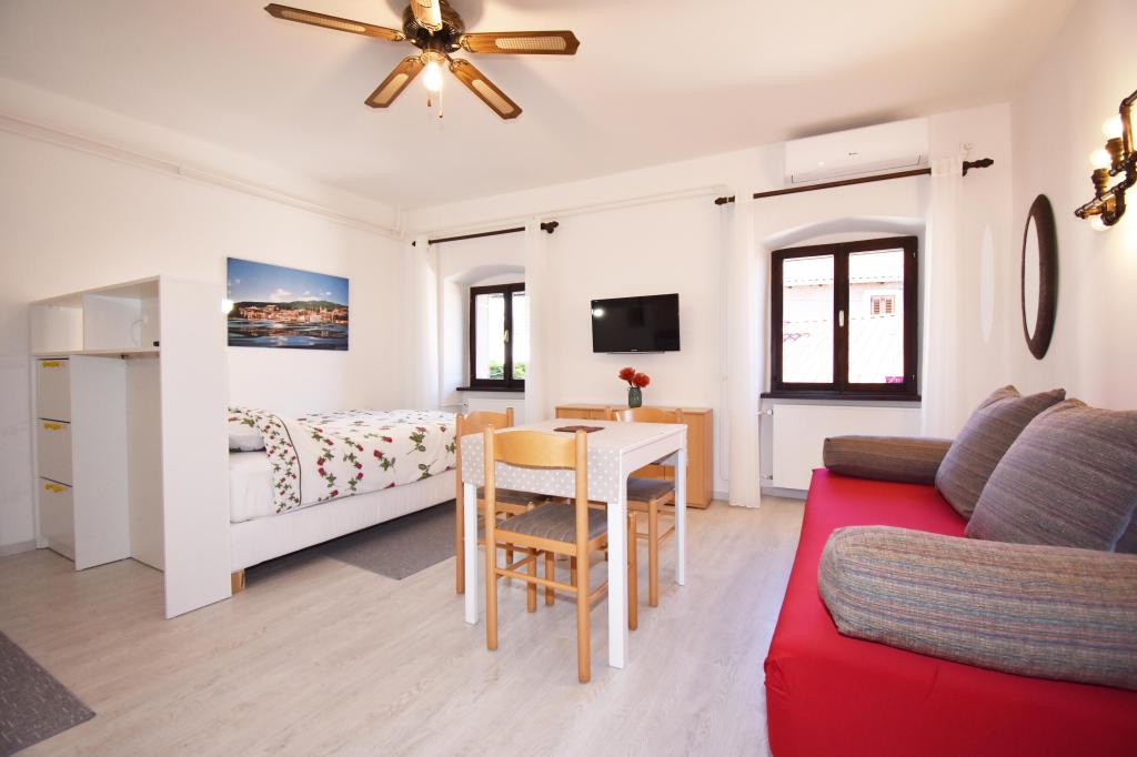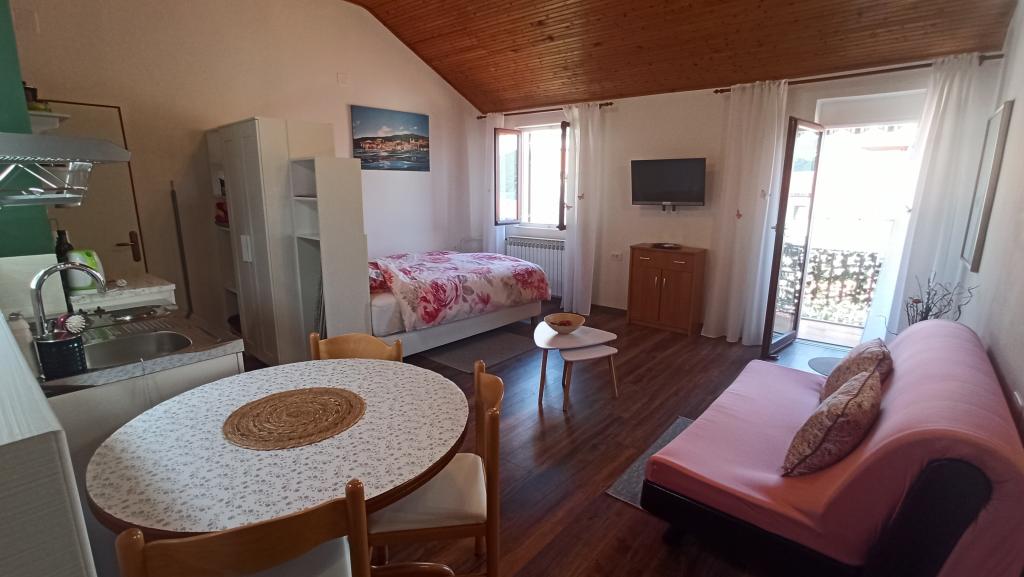 Dwa apartamenty typu studio, każdy z jednym łóżkiem podwójnym i jednym łóżkiem dodatkowym, znajdują się w Volosko, spokojnej części Opatiji, dawnej wioski rybackiej. Do morza oddalone są zaledwie 50 m. W ich bezpośrednim sąsiedztwie znajdują się sklepy spożywcze i kilka najlepszych restauracji na Riwierze Opatija! Studio+1 ID:2710 składa się z pokoju z łóżkiem małżeńskim i dostawką (rozkładana sofa), aneksu kuchennego będącego częścią pokoju, łazienki (prysznic/WC) oraz balkonu z widokiem na morze. Studio+1 ID:2711 ma wszystko, co ma Studio+1 ID:2710 z wyjątkiem balkonu i widoku na morze. Zamiast balkonu, Apartament Studio 2 posiada wyjście na taras (bez widoku na morze).