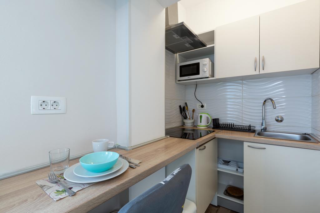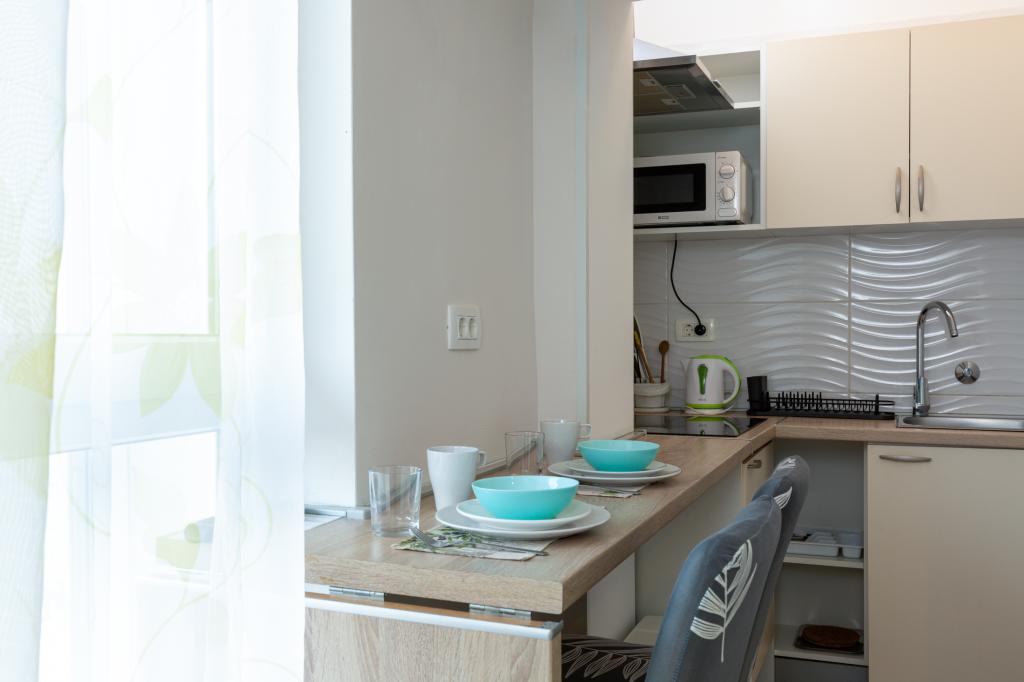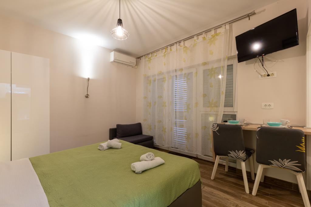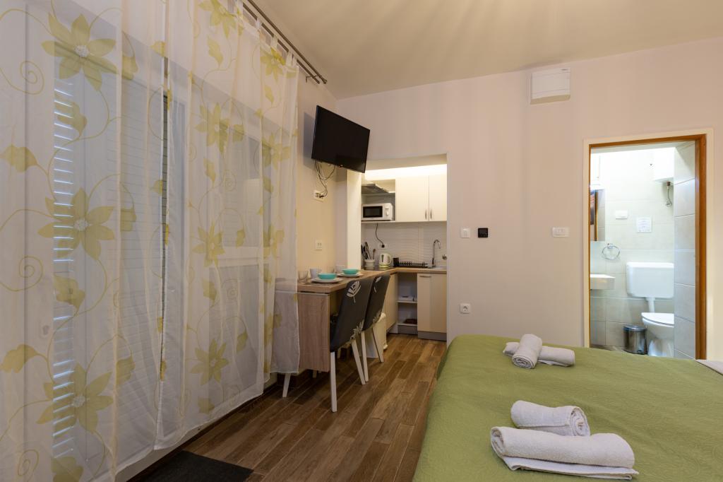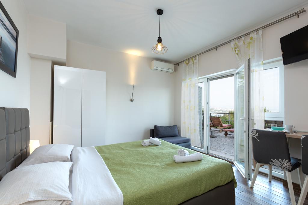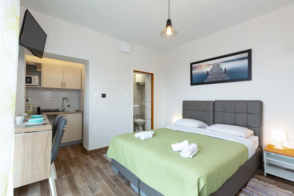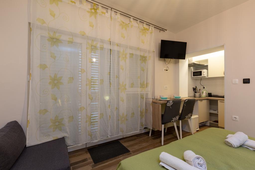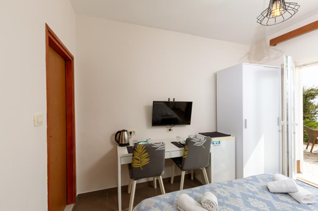 Studio z widokiem na morze i dostępem do dużego tarasu, idealne na chwile relaksu. Bardzo czysty i wyposażony we wszystkie niezbędne udogodnienia na kilka nocy. Gorąco polecam!!!
