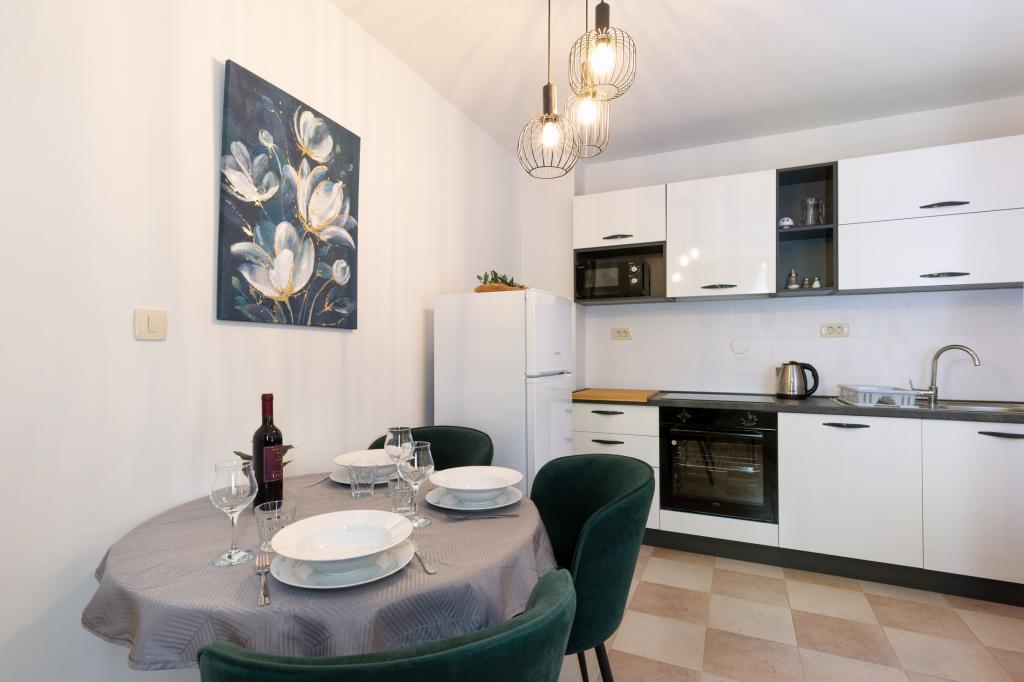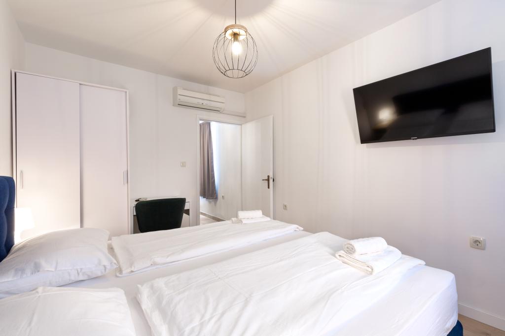 Doskonałe zakwaterowanie, w pełni wyposażone, czyste, cisza i spokój, widok na morze, wygodne, parking, ładny dziedziniec, ładny i czysty basen. Centrum i plaża są blisko. Za każde polecenie! Na pewno wrócimy!
