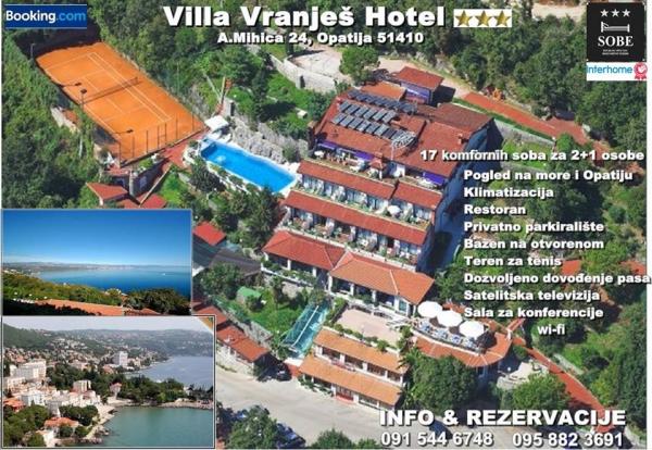 Villa Vranjes znajduje się w spokojnej części miasta, z widokiem na błękitne wody Zatoki Kvarner dala 700metara od morza, 1 km od centrum miasta Opatija. Przeznaczony dla obu; biznesu i rozrywki \ Hotel Villa Vranjes \ usytuowany jest w Opatija i jeden z najbardziej znanych miejsc w mieście. Odwiedzający miasto mają stąd świetny dostęp do wszystkich atrakcji, jakie to miejsce ma do zaoferowania. Posiada 10 pokoje (podwójne dostawka-kanapa), odkryty basen 185 m, kort tenisowy i Wi Fi na terenie całego obiektu. Villa Vranjes jest doskonałym miejscem uroczystych okazjach, lunche biznesowe, prezentacje, seminaria, zjazdy rodzinne. Parking może pomieścić autobusy. Pokoje wyposażone są w łazienkę, TV, lodówkę, klimatyzację, wentylator, oraz balkon z widokiem na morze i są wystarczająco szerokie, aby skonfigurować dodatkowe łóżka dla dzieci i dorosłych.