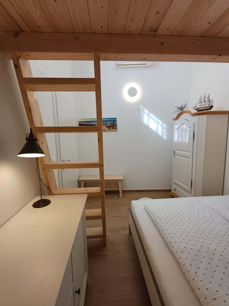 APARTAMENT "BATINOVIĆ" (2+1) PIERWSZY RZĄD DO MORZA -OREBIĆ Chorwacja W miejscowości Orebić na półwyspie Pelješac oferujemy nowo wybudowany apartament wakacyjny. Apartament położony jest blisko plaży (20 m), kawiarni, restauracji, sklepów, portu promowego i łodzi na wyspę Korčula. Składa się z sypialni z dodatkowym łóżkiem na antresoli, salonu z rozkładaną sofą, kuchni i łazienki. Idealnie nadaje się dla 2-3 osób. Wyposażenie -wifi, TV -klimatyzacja -ekspres do kawy -pralka i suszarka -suszarka do włosów -parking -taras Dodatkowo oferujemy -wypożyczalnia rowerów i SUP -wycieczki na wyspy prywatną łódką