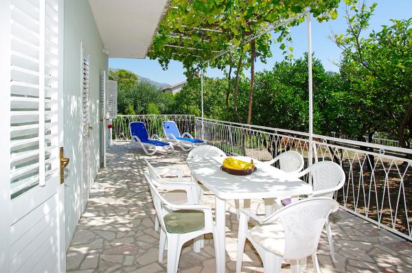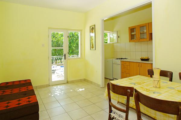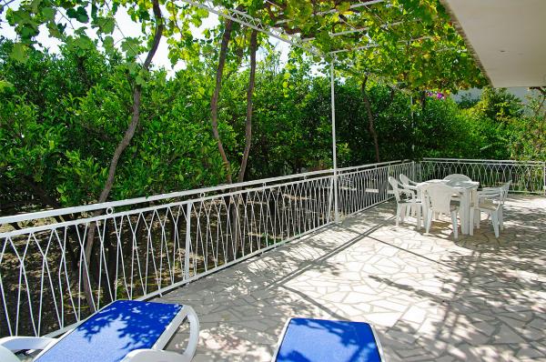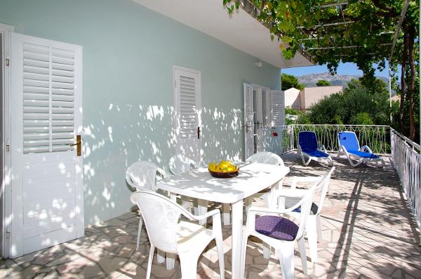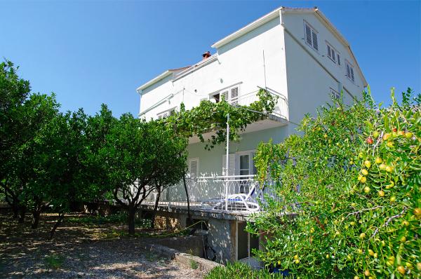 Dom Dužević położony w cichej deptaka Orebic, zaledwie 30 metrów od kamienistej plaży i romatničnog 2 km, długie spacery. Wszystkie apartamenty oferowane są zbudowane tak, że mają zupełnie osobne wejście, taras i możliwość spokojnego korzystania w dużym sadzie owoców cytrusowych, granaty, figi i Nespoli. Północny, przestronny dziedziniec z boku (250 m2) jest ozdobiona starego drzewa chleba świętojańskiego o wysokości korony 15 m, poniżej której mieści się część parkingu dla 8 samochodów. Po północnej stronie, na parterze znajdują się dwa małe apartamenty. Grunt na południowym Satran domu znajduje się apartament dla 4 osób z dużym tarasem pod krata winorośli, którego miejsce idealny cień na relaks i małych dzieci. Na pierwszym piętrze domu Dužević rodziną mieszka natomiast na drugim piętrze znajduje się duży apartament dla 8 osób, w której każdy z czterech pokoi roztacza się widok na morze. Taras w ramach apartamentów z widokiem na kanał, gdzie krążowniki żeglarstwa i nowoczesnej żeglowania.