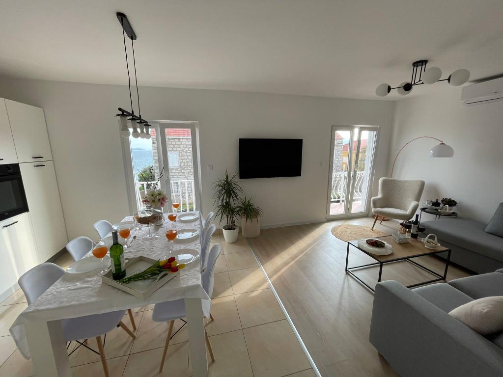 Przestronny i zadbany apartament z widokiem na morze wyposażony we wszystkie możliwe udogodnienia - 2x TV z podłączeniem do sieci, Wi-Fi, Klimatyzacja w salonie jak i w sypialniach, w pełni wyposażona i nowoczesna kuchnia [duży plus za kostkarkę do lodu i pralkę automatyczną].Bezproblemowy dojazd do apartamentu dwukierunkową drogą ,dużo miejsca parkingowego oraz taras z wygodnymi meblami ogrodowymi. Umiejscowienie w centrum miejscowości kilka kroków od plaży ,molo i wielu restauracji plasuje ten apartament w ścisłej czołówce w tym mieście. Po przyjeździe zostaliśmy przywitani przez przemiłą panią która służyła pomocą pod czas naszego pobytu a w samym apartamencie czekało na nas wino, nalewka oraz świeże owoce i ciastka w sypialni. Bardzo miło wspominam pobyt i szczerze polecam apartament osobom które cenią sobie wygodę podczas wakacji.