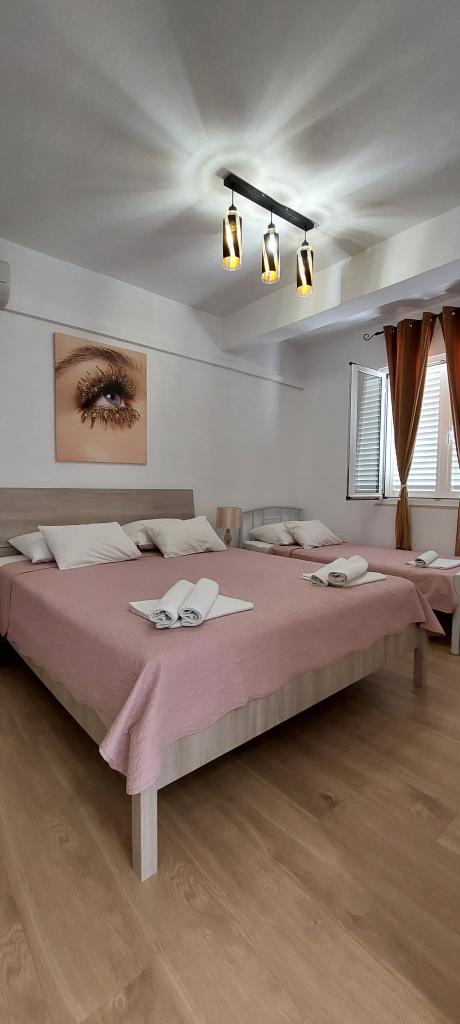 Zakwaterowanie jest bardzo dobre, wszystko jest schludne i czyste. Mieszkanie ma wszystko, czego potrzebujesz do pobytu. Przyjaźni gospodarze. Mieszkanie wygląda dużo lepiej osobiście niż na zdjęciach. Przed apartamentem znajduje się ogromny taras odpowiedni dla mniejszych dzieci, ale także do siedzenia, ponieważ przez cały dzień jest w cieniu. Polecam go rodzinom z małymi dziećmi, ale także wszystkim, którzy chcą spędzić wakacje w znakomitych warunkach noclegowych.