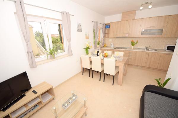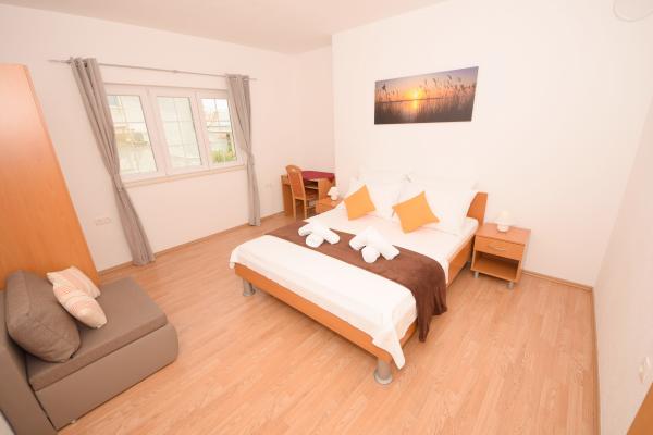 Czytaj więcej KwaterWszelkie zapytania prosimy kierować na e-mail lub telefon komórkowy. Rezerwacja jest dokonywana z zaliczką w wysokości 25% całkowitej ceny zakwaterowania. Płatność za nocleg dokonywana jest pierwszego dnia po przyjeździe gościa. Czas przyjazdu od 14:00, czas wyjazdu do 10:00. Oferujemy zakwaterowanie na minimum 5 nocy. W przypadku apartamentu A2 (2 plus 2) - taras obejmuje balkon z pięknym widokiem na góry, a widok na morze istnieje, ale jest ograniczony przez sąsiedni dom.
