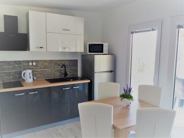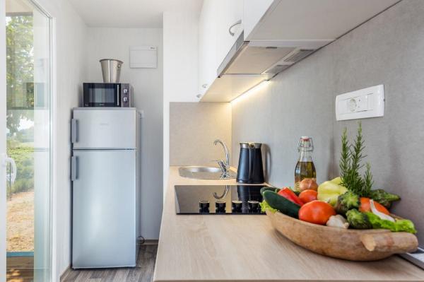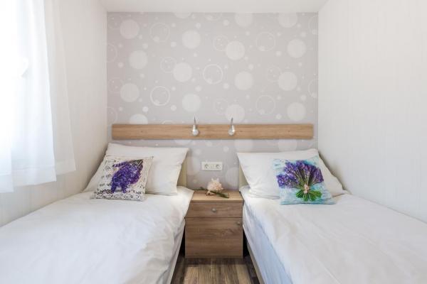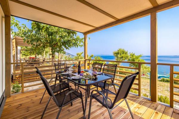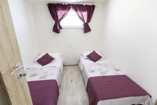 Nowe nowoczesne domy mobilne w pełni wyposażone. Każdy z nich ma widok na morze, luksusowe domki (4 1) mają basen z masażem na tarasie domku. Odległość od piaszczystej plaży wynosi zaledwie 20 m. W obiekcie dostępna jest pralnia, restauracja, recepcja, plac zabaw, bankomat ... Cechy domku: powierzchnia: 40 m² zadaszony taras 18 m² (stół z sześcioma krzesłami, 2 leżaki) - TV / SAT - bezpłatny bezprzewodowy dostęp do Internetu - klimatyzacja - przestronna sypialnia dwuosobowa z łóżkiem (150 x 200 cm) - przestronny pokój typu twin (80 x 200) cm) - dwie łazienki z toaletą, prysznicem i WC - przestronny salon z miejscem do siedzenia dla 3 osób z dostawką, stół z czterema krzesłami - wyposażona kuchnia w salonie, z kuchenką elektryczną, lodówką z zamrażarką, ekspresem do kawy, kuchenką mikrofalową, zmywarką i czajnikiem na wodę - Pościel i ręczniki - Parking - Zwierzęta nie są akceptowane - śniadanie, lunch i kolacja.