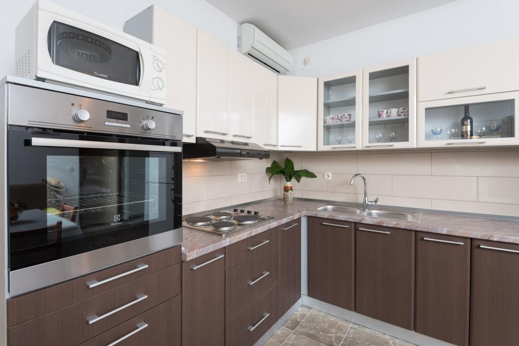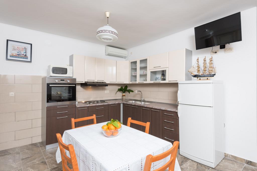 Nowo wyremontowany apartament znajduje się na parterze rodzinnego domu, w którym mieszka właściciel. W pobliżu 50 m znajduje się supermarket, piekarnia, kawiarnia, restauracja, boisko do piłki nożnej. Główna plaża Trstenica (piaszczysta) znajduje się zaledwie 150 m od hotelu. Mieszkanie posiada zadaszony taras, telewizję satelitarną, Wi-Fi, klimatyzację. Życzymy miłego pobytu!