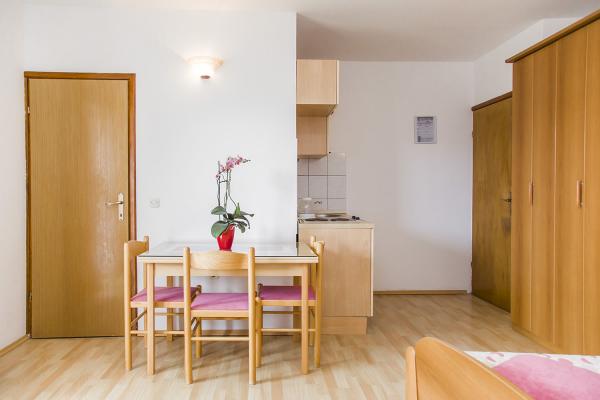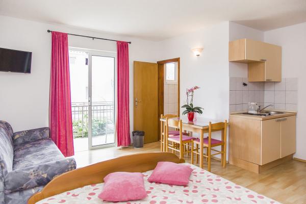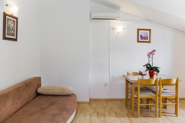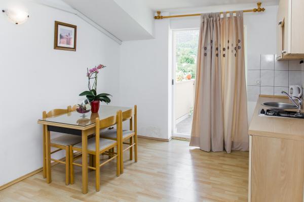 Villa Mirela znajduje się w Orebic na półwyspie Pelješac. Położony w cichej okolicy, w pobliżu głównej plaży Trstenica. Villa oferuje 7 apartamentów. Ponadto znajduje się duży parking, duży ogród z trawą, która jest odpowiednia dla dzieci podczas zabawy, grill i ognisko - które mogą być wykorzystywane przez gości. Villa nie jest na głównej drodze, co jest idealnym rozwiązaniem dla małych dzieci i innych osób wymagających relaksujące i spokojne wakacje. Niezliczone gości, którzy przeszli przez naszej willi i że jest zadowolony z powrotu są dlatego możemy powiedzieć, że turystyka w naszej rodzinnej tradycji i jakości. Słuchanie życzenia gości, z ciągłym inwestycji, stworzyliśmy komfortowe pokoje, które można zjeść wszystkich, którzy odwiedzają nas. Jako gospodarze, na rozmowy i podać niezbędne informacje. Dokładamy wszelkich starań, aby Państwa pobyt był jak najbardziej przyjemny i chcemy wrócić ponownie i polecają nas swoim znajomym. Apartament A8 znajduje się w małej miejscowości Trsteniku - 20 km od Orebic - ten apartament jest doskonały dla tych, którzy lubią ciszę i spokój. ,