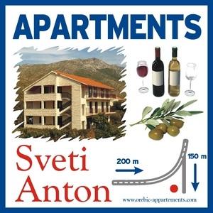 Apartamenty St Anton znajduje się w najpiękniejszej części wybrzeża Adriatyku, na południowych zboczach półwyspu Peljesac, tuż przy wjeździe do miasta Orebic. W pełni wyposażone i nowoczesne apartamenty w spokojnej okolicy, w odległości 400 m od piaszczystej plaży i kamienistej i 15 minut spacerem od centrum miasta. Oferujemy zakwaterowanie w 8 apartamentów, z widokiem na morze, kanał Peljesac i wyspy Korčula. Wszystkie apartamenty wyposażone są w kuchnię, telewizję satelitarną, radio, WiFi, suszarka do włosów. Trzecie piętro jest klimatyzowany. Korzystanie z Internetu w cenie. Grill z meblami ogrodowymi jest dostępna do użytku dla gości. Wszyscy goście mają parking. Zwierzęta są akceptowane w apartamentach. Ponadto oferujemy usługi pralnicze. Nasi goście są zawsze do Państwa dyspozycji, oferując miłą atmosferę i autentyczne doświadczenie miejsc, aby ich pobyt w apartamentach Anton zamieniły się w niezapomniane przeżycie.