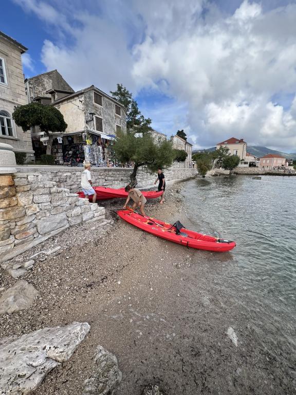 86 KROKÓW do plaży – zejdź po kamiennych schodach, pośród drzew oliwnych i cytrynowych, z widokiem na błękitne morze – miłośnicy plaż będą zachwyceni. WYCIECZKI Korčula, Mljet i okoliczne wyspy są w zasięgu ręki (port w Orebiću oddalony jest zaledwie o 250 m). Delektuj się smakami kuchni śródziemnomorskiej i włoskiego Dolce Vita (wszystko w promieniu 300 metrów). BEZPŁATNIE: kajaki morskie, deski SUP, parasole i maty plażowe. WITAMY w samym centrum OREBIĆ i nie przegap okazji na idealne wakacje. A PONIEWAŻ ZDJĘCIA MÓWIĄ WIĘCEJ NIŻ SŁOWA – SPÓJRZ NA NIE I OCEŃ SAM. - APARTAMENTY W pełni klimatyzowane - Wi-Fi - SAT-TV - Kuchnia - Łazienka z prysznicem - Prywatny parking - Balkony z markizami - Pościel i ręczniki GRILL Nasz obszar do grillowania i taras ogrodowy otoczony drzewami cytrynowymi jest w pełni wyposażony i stanowi doskonałe miejsce do przygotowywania ryb lub grillowanego mięsa.