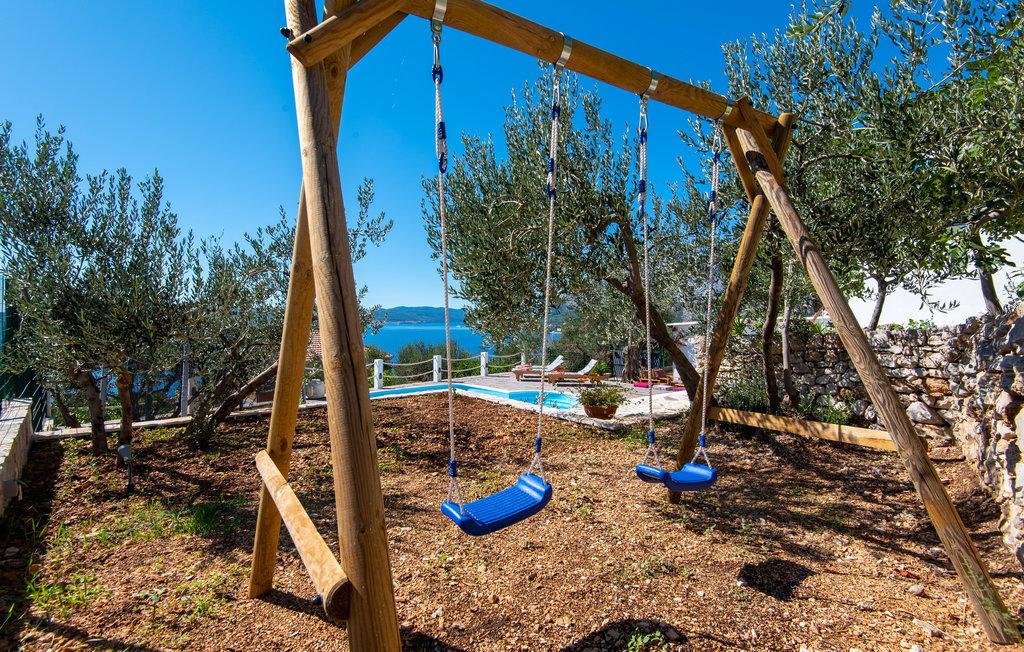Postup to mała miejscowość z kilkoma domami położona 4 km od Orebića. Ma długą tradycję winiarską, a winorośl specjalnej odmiany, ze względu na skład gleby, klimat i nachylenie terenu, daje winogrona, z których powstaje najwyższej jakości wino o tej samej nazwie. Drink powitalny to butelka tego wina i brandy, które osobiście robię z winogron z moich winnic. Dom znajduje się na wzniesieniu, dzięki czemu ma piękny panoramiczny widok na kanał Pelješka, Korčulę (15 minut łodzią od Orebića), otwarte morze i Mljet. Duży taras na 1 piętrze ze swoim wyposażeniem i widokiem zapewnia ogromną satysfakcję osobom w każdym wieku. Pod względem wyglądu i położenia możemy go porównać do mostka kapitańskiego. W ciągu dnia, kiedy nie jesteś na plaży lub na jednej z poniższych czynności, każdy znajdzie satysfakcję w gęstym cieniu dolnego dużego tarasu. Cień częściowo tworzy osłona, a częściowo gruba warstwa dzikich winorośli. Na tarasie znajduje się grill, dzięki czemu korzystanie z niego nie wymaga przebywania na słońcu. Cały ogród jest ogrodzony i zapewnia wyjątkową prywatność, a każdy znajdzie coś dla siebie. Ma prawie 1000 m2 i jest ułożony kaskadowo w kierunku morza. Porośnięty jest śródziemnomorską roślinnością, figami, cytrusami i oliwkami. Jeśli znajdziesz się w czasie, gdy na tej roślinie jest sezon na niektóre owoce, są one do Twojej dyspozycji. Drzewa oliwne zapewniają przyjemny cień. Prawdziwym centrum corocznych wakacji jest basen z otaczającymi obiektami i pięknym otwartym widokiem. Dopóki tego nie spróbujesz, trudno sobie wyobrazić, ile przyjemności sprawia orzeźwienie i relaks w jego 32 000 litrów przejrzystej i ciepłej wody w czasie upałów dnia lub orzeźwienie w nocy z widokiem na rozgwieżdżone niebo. W drodze do lub z basenu weź miły prysznic w zewnętrznym prysznicu z ciepłą wodą. Dom jest daleko od głównej drogi i nie ma hałasu, więc czasami cisza wydaje si