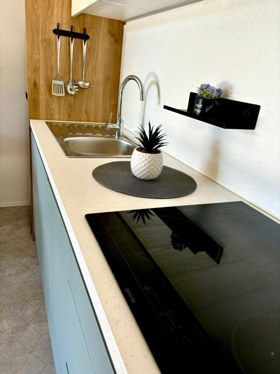 Odkryj nowy, nowoczesny dom mobilny w stylu śródziemnomorskim, położony w małym dalmatyńskim miasteczku Orebić (Camp „Dalmata”), otoczony dziewiczą przyrodą i złotymi plażami, z licznymi restauracjami i winiarniami oferującymi wyśmienitą kuchnię i słynne wina. Zrelaksuj się na 30-metrowym tarasie, zaledwie kilka kroków od basenu, wyposażonym w leżaki, część wypoczynkową na świeżym powietrzu i wszystko, czego potrzebujesz, aby zaspokoić swoje hedonistyczne pragnienia.