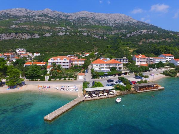 Witamy w nowocześnie urządzonym bungalowie z basenem do masażu lub apartamentem rodzinnym w Perni na Peljesacu. Bungalow składa się z sypialni, łazienki oraz połączenia kuchni i salonu. Bungalow ma również duży prywatny taras z basenem do masażu i widokiem na morze z widokiem na wyspę Korcula. Bungalow jest w pełni wyposażony we wszystko, co jest potrzebne do idealnego wypoczynku (zmywarka, pralka, ekspres do kawy, bezpłatny dostęp do Internetu). Zaraz na ulicy znajdziesz się na plaży obok restauracji, w której możesz skosztować specjałów z owoców morza. Plaża znajduje się 50 m od domku i 20 m od apartamentów. Obitelski apartman znajduje się tuż przy plaży - 20 m od wzgórza św. Eliasz. Mieszkanie ma dwie sypialnie, łazienkę i mini kuchnię, bezpłatny dostęp do Internetu, parking i duży taras. Znajduje się na 1 piętrze. Jest idylliczny dla rodziny trójki dzieci.