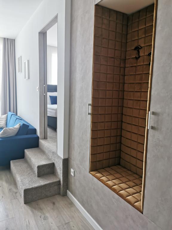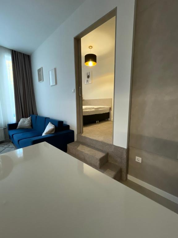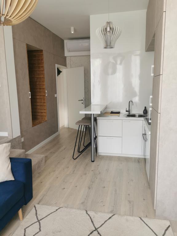 Witamy w naszej kawalerce Indigo**** Naszym gościom oferujemy nowy, nowoczesny iw pełni wyposażony apartament. Mieszkanie jest klimatyzowane i składa się z salonu i kuchni, a także oddzielnej sypialni, łazienki i przedpokoju. Wszystkie pokoje są w pełni wyposażone do codziennego życia. Bezpłatny parking z monitoringiem znajduje się przed samym apartamentem. Wejście do apartamentu jest samodzielne. W mieszkaniu pralka i suszarka do ubrań.