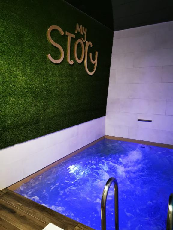 Welcome Apartment My Story to idealny wybór na urlop lub wizytę biznesową w Osijeku. Znajduje się w zachodniej części miasta, zaledwie 10 minut spacerem od Rynku Głównego, katedry, teatru, instytucji publicznych oraz promenady nad Drawą. W nowocześnie urządzonym i starannie wyposażonym apartamencie nasi goście mogą korzystać z krytego basenu z podgrzewaną wodą, który dzięki przeciwprądowi jest odpowiedni dla pływaków o różnych umiejętnościach i stylach pływackich. Zrelaksuj się w łaźni tureckiej, która działa uspokajająco i antystresowo, poprawia krążenie, łagodzi problemy z oddychaniem, wspomaga krążenie limfy, wzmacnia odporność i pomaga w usuwaniu cellulitu. Kryty basen o powierzchni 10 m2 i głębokości 1,5 m obejmuje możliwość pływania w przeciwprądzie. Temperatura basenu wynosi 31 C. Strefa wellness w apartamencie i basen są przeznaczone tylko dla gości tego apartamentu. Pojemność mieszkania to 2+1 dziecko. Strzeżony parking dla prywatnego samochodu z kamerą monitorującą