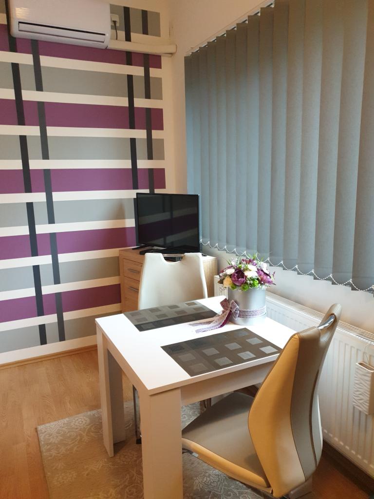 Nowe nowocześnie urządzone apartamenty w Osijeku. Zlokalizowane są w zacisznej części miasta, w pobliżu stadionu oraz hali Gradski Vrt i pływalni. Przystanek autobusowy oddalony jest o 20 metrów. Apartament może pomieścić 1-4 osoby, w pobliżu znajduje się centrum handlowe, kawiarnia, pizzeria i restauracje. Dostępny jest bezpłatny parking. Mieszkanie składa się z pokoju z podwójnym łóżkiem 180x200, TV SAT, Wi-Fi, kuchni, łazienki i przedpokoju. Wszystkim gościom apartamentu Salic oferujemy bezpłatny teleskopowy widok Jowisza, Saturna i Księżyca.