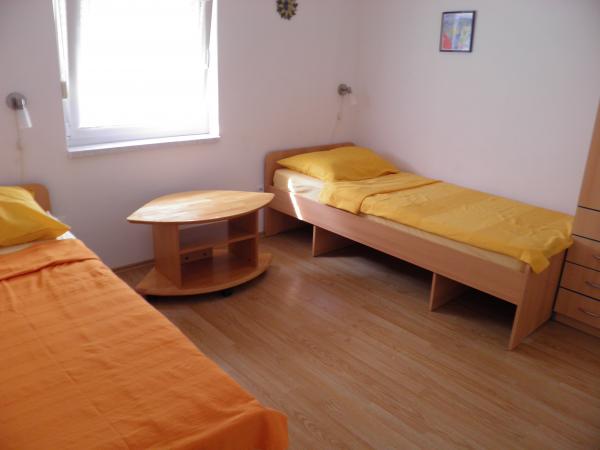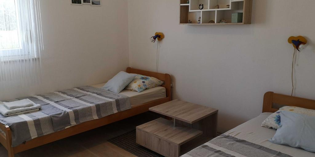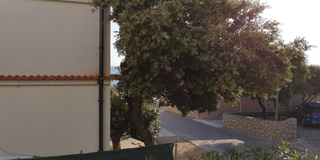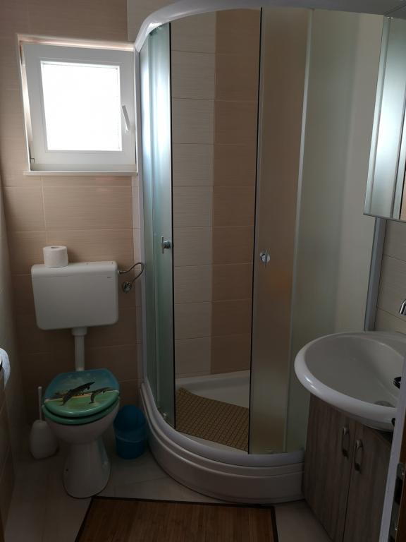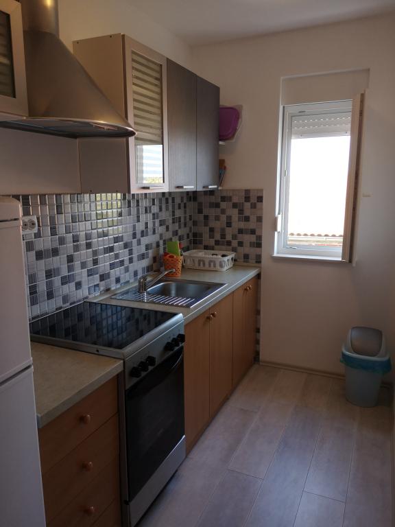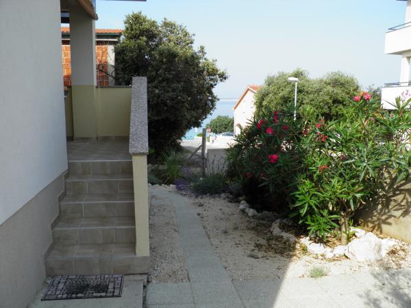 Pięknie i nowocześnie urządzony apartament na parterze i pierwszym piętrze, 50 m od morza, odpowiedni dla rodzin z dziećmi. Apartament posiada dwie sypialnie, salon, w pełni wyposażoną kuchnię, łazienkę oraz taras. Klimatyzacja i bezprzewodowy internet są wliczone w cenę. Za domem znajduje się miejsce parkingowe. Na podwórku znajduje się grill i prysznic na zewnątrz, w którym można się ochłodzić w ciągu dnia. Plaża oddalona jest o 50 m, jest część kamienista i część żwirowa odpowiednia dla mniejszych dzieci.