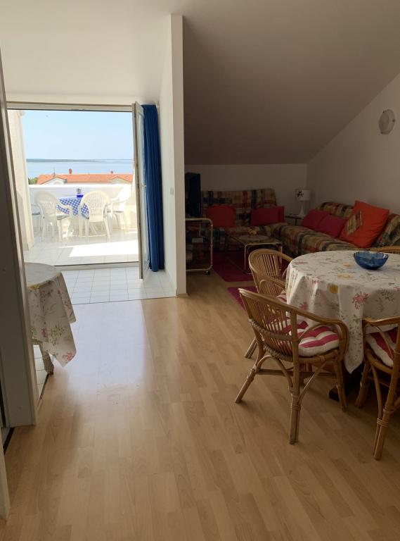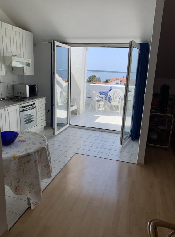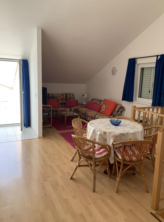 Całkowicie i nowocześnie wyposażone apartamenty w cichej okolicy Mandry, położone w trzecim rzędzie do morza w ślepej uliczce. Obiekt znajduje się 3 minuty spacerem do centrum, plaży i wszystkich ważnych obiektów. Mieszkanie znajduje się na drugim piętrze domu.