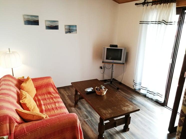 Apartament znajduje się na 1 piętrze domu rodzinnego w miejscowości Mandre na wyspie Pag. Składa się z dwóch sypialni z podwójnymi łóżkami, salonu, kuchni, łazienki i małej toalety. Do apartamentu przynależy loggia o powierzchni 7 m2 z widokiem na miasteczko, morze oraz wyspy Maun, Skrda, Olib i Silba. Na podwórku znajduje się kominek, stół i krzesła, prysznic oraz leżaki umożliwiające popołudniowy odpoczynek z dala od codziennego zgiełku kawiarni i plaż. Nasz dom znajduje się 200 metrów od morza. Parking znajduje się tuż przy domu.