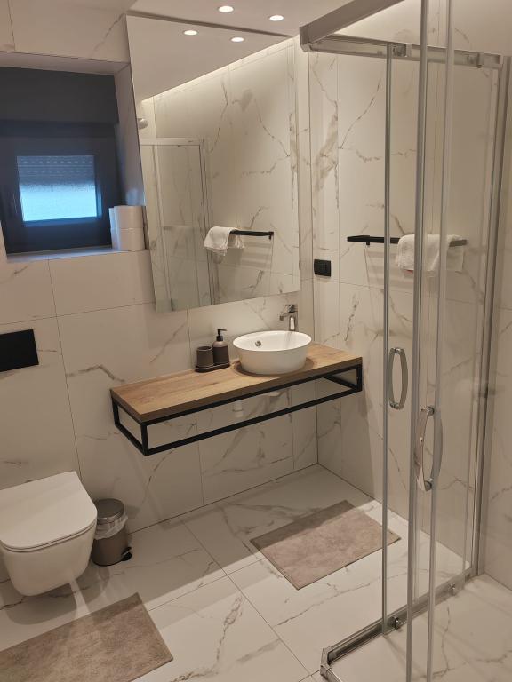 Pięknie nowocześnie urządzony apartament z mega tarasem. Dostępny jest telewizor ze wszystkimi popularnymi platformami oraz standardowe WiFi. Niczego nie brakuje, a jeśli czegoś brakuje, właściciele są bardzo mili i również spełniają to życzenie. Wrócimy Rodzina Klug/Niemcy