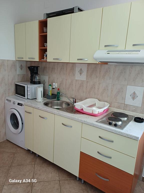Apartamenty znajdują się w spokojnej okolicy Mandre, w drugim rzędzie od morza, 40 metrów od morza. Obiekt jest oddalony o 10 minut spacerem od centrum, gdzie znajdują się wszystkie niezbędne udogodnienia (apteka, sklep, owocowo-warzywny, kawiarnie, restauracje).