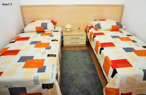 Trzy apartamenty do wynajęcia w domach w Mandre. Dwa apartamenty Maris 1 i Andrea 2 znajdują się na piętrze, a jeden Andrea 1 na parterze. Wszystkie apartamenty mają osobne wejścia. Apartamenty nadają się również na wakacje dla jednej lub kilku rodzin. Znajdują się one na wzniesieniu z pięknym widokiem na Morze Adriatyckie. Położone są w mniej zaludnionej części Mandre, otoczone lasami iglastymi, co stwarza prawdziwą atmosferę relaksu i przyjemności. Apartamenty składają się z kuchni, salonu, łazienki i dwóch sypialni. W jednej sypialni znajduje się podwójne łóżko, aw drugiej dwa pojedyncze łóżka. Apartamenty posiadają również prywatny taras i bezpłatny parking. Do plaży jest 200 m. Możliwość wynajęcia łodzi w pobliskim porcie. Zaliczka jest wpłacana jako potwierdzenie rezerwacji. Opłata klimatyczna wliczona w cenę. Możesz zobaczyć wolne terminy apartamentów w kalendarzu lub wysłać zapytanie na adres e-mail. Powitamy każdego gościa. Witamy!