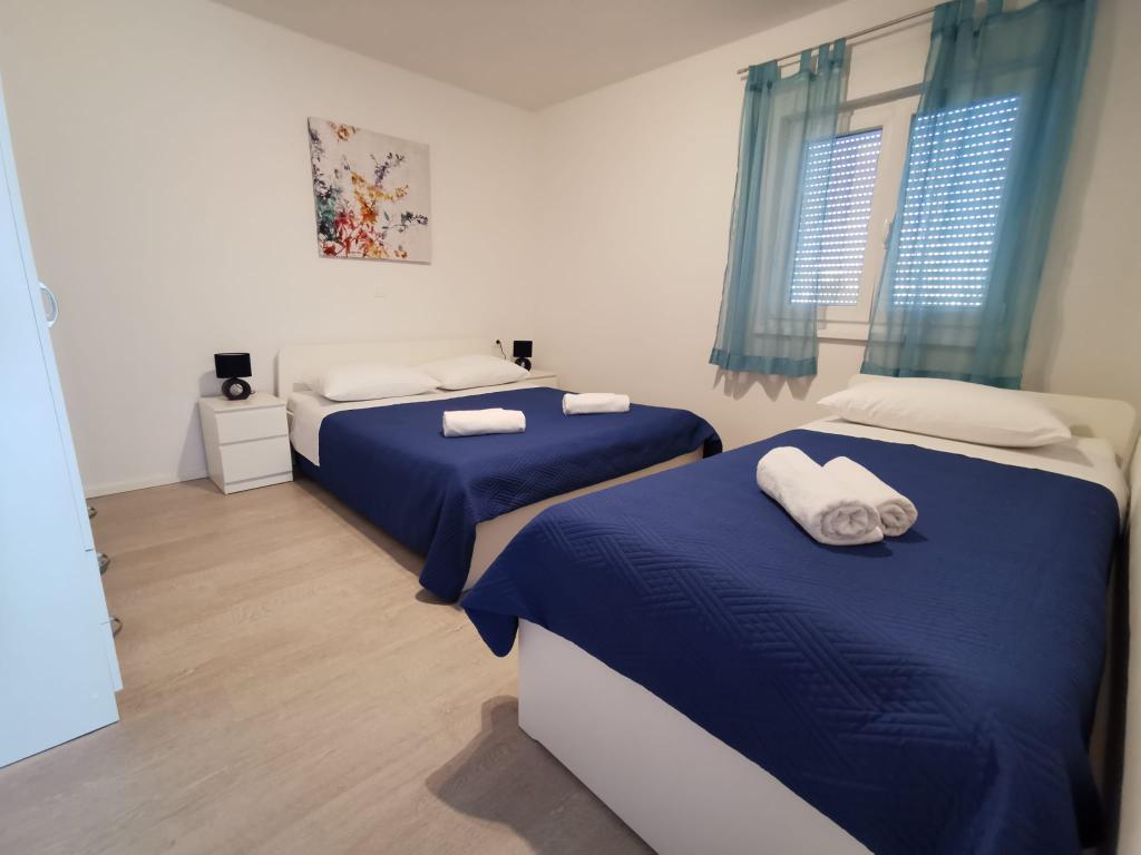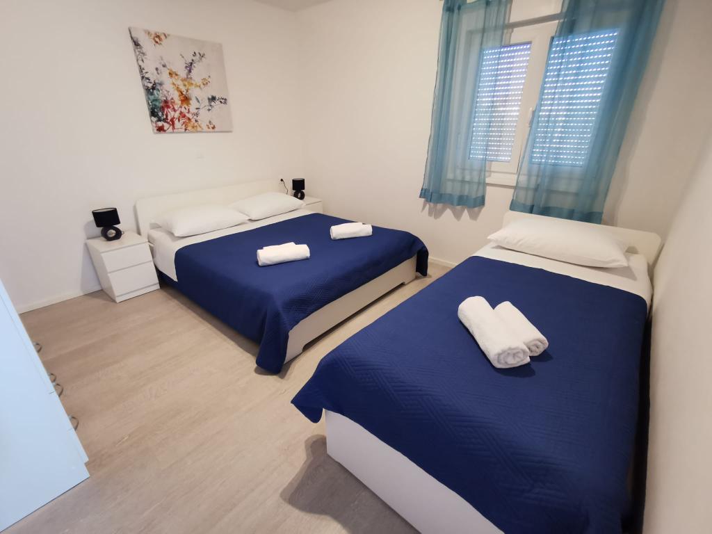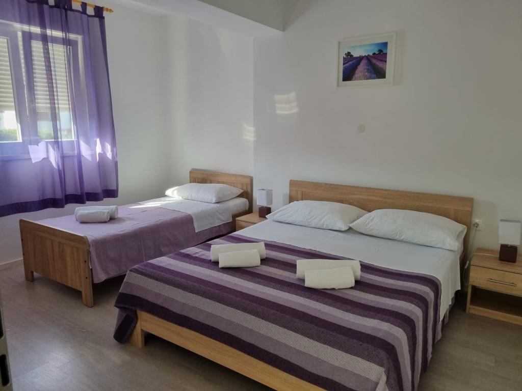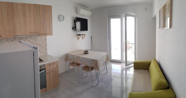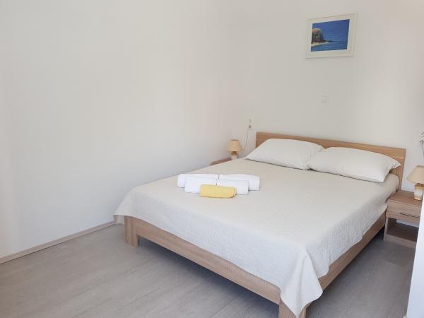 Nasze apartamenty zlokalizowane są nad morzem, w centrum Mandri, na wyspie Pag. Wszystkie apartamenty znajdują się na 1. piętrze naszego rodzinnego domu, dzięki czemu oferują piękny widok na morze. Apartamenty są świeżo wyremontowane i wyposażone w internet, klimatyzację, TV/SAT, w pełni wyposażoną kuchnię, a dodatkowo istnieje możliwość opuszczenia moskitier na wszystkich oknach wraz z roletami, jako ochrona przed komarami. Każdy apartament posiada własne miejsce parkingowe, a wszyscy goście mogą korzystać z grilla w ogrodzie. Przez nasze podwórko wychodzi się bezpośrednio na plażę, więc do przyjemnego wypoczynku w słońcu wystarczy ręcznik na ramieniu! Nie możemy się doczekać Twojego przyjazdu!