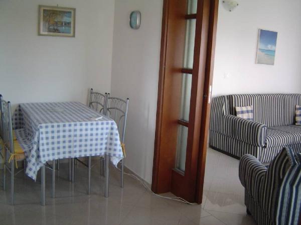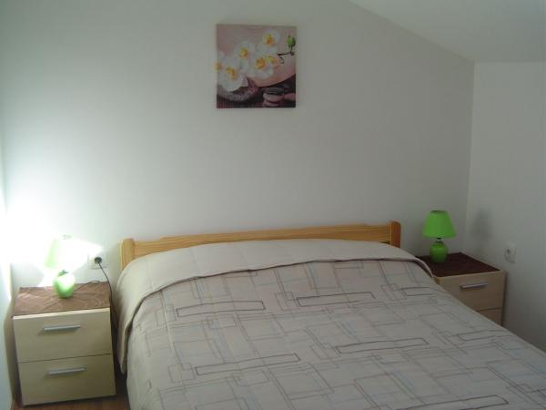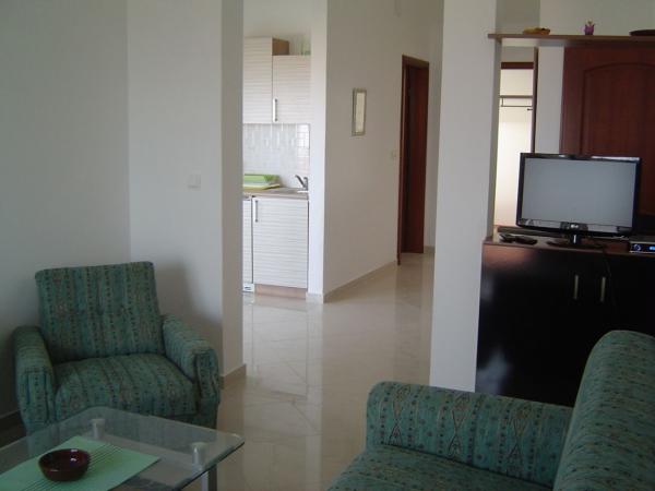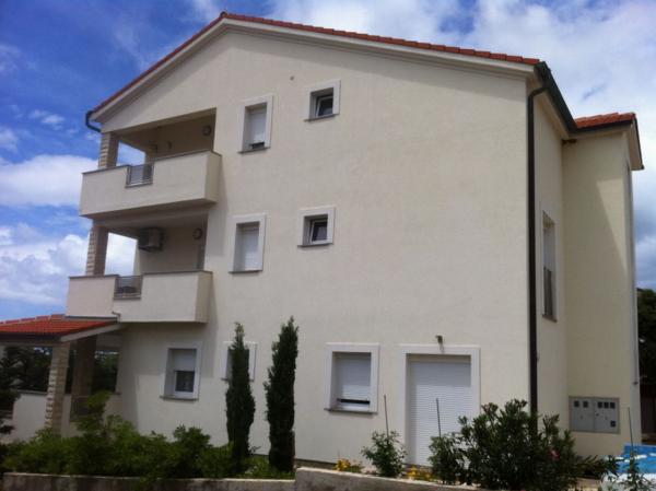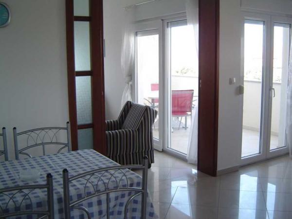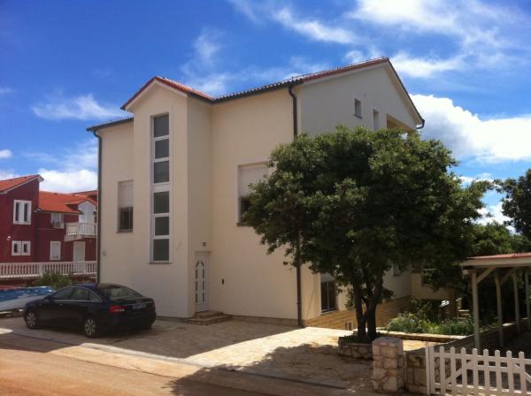 Apartamenty znajdują się w nowo wybudowanym domu w spokojnej ulicy w Mandre, kilka minut spacerem od plaży i centrum miasta. Wszystkie apartamenty mają oddzielne wejście i przestronny taras z widokiem na morze. W pełni wyposażone, z TV / SAT i dostęp do internetu WiFi. Parking znajduje się przed domem.