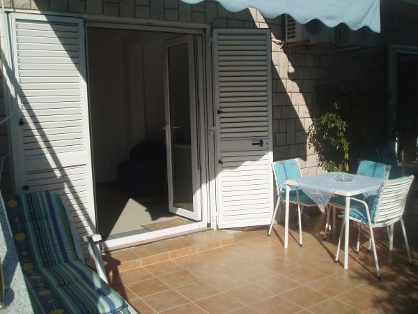 Apartamenty znajdują się w najbardziej atrakcyjnej części Mandre, w pierwszym rzędzie do morza, przy kamienistej i żwirowej plaży. W przeciwieństwie do większości innych turystów, nie musisz nosić ciężkich toreb, wystarczy przejść z podwórka, przez plażę i popływać w krystalicznie czystym morzu. Jeśli masz ochotę na kawę, lody lub zgłodniejesz, 180 m od mieszkania zaczynają się kawiarnie, restauracje, piekarnia, tytoń, sklepy, mały targ, targ rybny, bankomat, kantor, aw pobliżu znajduje się kościół Matki Boskiej Śnieżnej. Apartamenty są w pełni wyposażone do użytku.