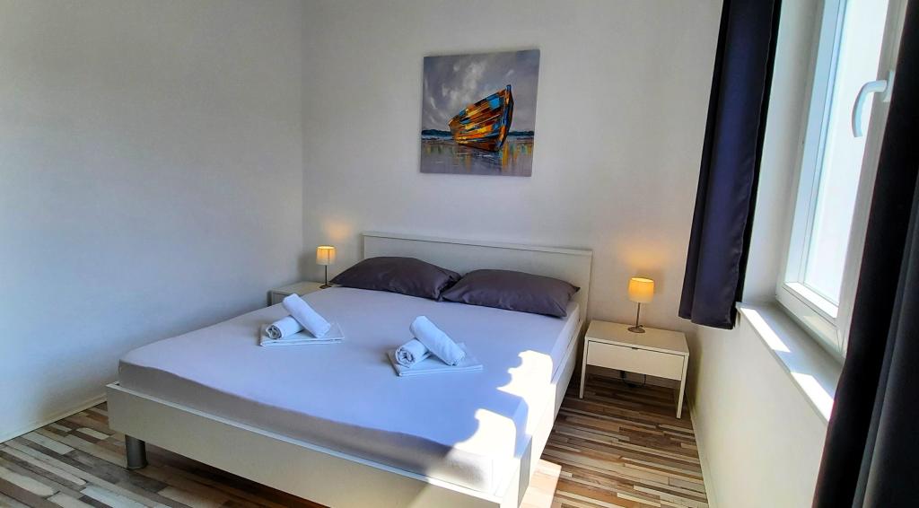 Witamy w apartamentach Dalona! Położone zaledwie kilka minut od historycznego centrum Pagu, apartamenty Dalona oferują idealne połączenie komfortu, nowoczesnego designu i praktyczności. Każdy apartament jest w pełni wyposażony i idealny dla rodzin, par lub przyjaciół, którzy chcą cieszyć się autentyczną wyspiarską atmosferą. Transfer lotniskowy dostępny jest na życzenie.