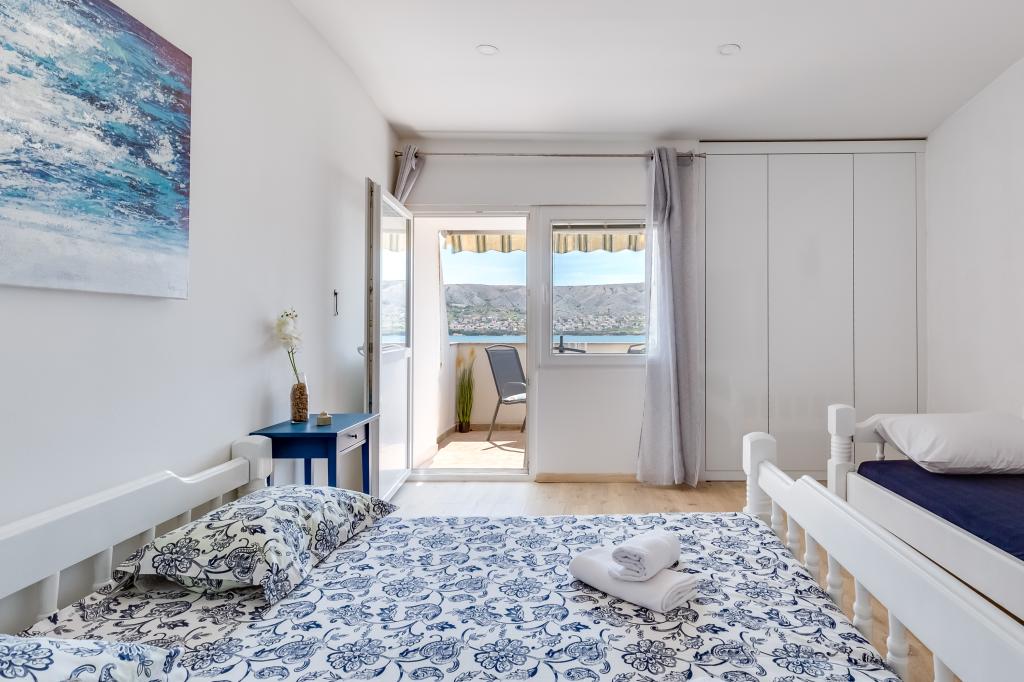 , Apartamenty Filip znajduje się w miejscowości Pag. Apartament wyposażony jest w trzy łóżka w sypialni podwójnym i pojedynczym łóżkiem i możliwością korzystania z podstawki. Układ daje Ci możliwość bezproblemowej pokój: sypialnia, pokój dzienny z aneksem kuchennym, łazienka z prysznicem i tarasem z widokiem na morze. Apartamenty są wyposażone w naczynia i sztućce, ręczników i pościeli dla każdego łóżka, lodówkę z zamrażarką, kuchenkę, telewizor i klimatyzację, co daje spokojny sen podczas gorących letnich wieczorów. Jeśli chcesz spędzić spokojne rodzinne wakacje poczujesz się jak w domu. Jeśli chcesz spędzić wakacje z grupą przyjaciół, apartamenty Filip są właściwym miejscem Okolice wloty Zrće jest 20 minut jazdy samochodem lub transportem publicznym. Do plaży jest około 100-150 mil rozciąga się wzdłuż wybrzeża. Każdy apartament posiada miejsce parkingowe. I Twój komputer jest zawsze usluzi.Cijena na życzenie.