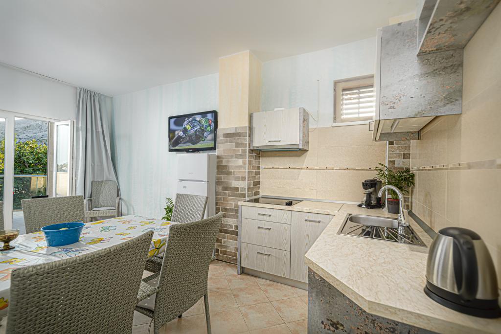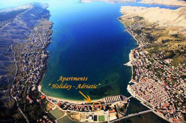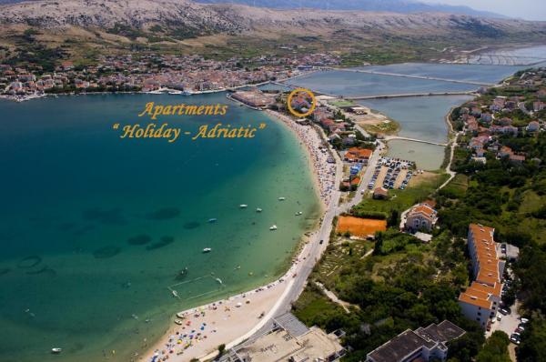 Apartamenty w miejscowości Pag znajduje się zaledwie 10 metrów od piaszczystej plaży, tuż obok karetki pogotowia i sklepów. W centrum miasta, restauracje, poczta, apteka i podobnych miejsc, trzeba iść około dziesięciu minut. Łatwa dostępność i minimalna odległość od naszego domu do wszystkich obiektów, które trzeba w czasie wakacji, aby nasze apartamenty idealnym wyborem dla rodzin z małymi dziećmi. Nasz dom został wybudowany na naturalnym ławicy, a morze jest po obu stronach domu. W ogrodzie obok domu znajduje się dobrze z wodą źródlaną, grill, stół dla większej liczby osób i plac zabaw dla gości w użyciu. Ogrodzony i strzeżony parking znajduje się obok domu po drugiej stronie drogi.
