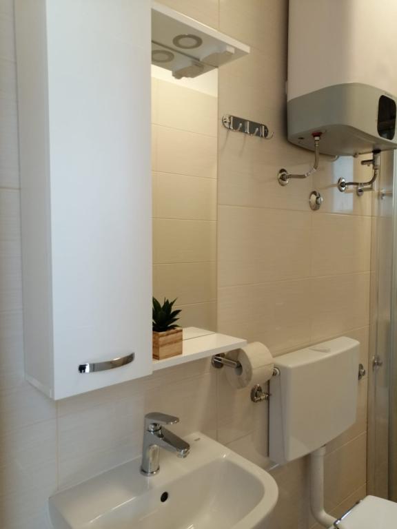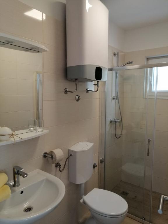 Mieszkaliśmy w apartamencie A4. Bardzo przestronne, nowocześnie urządzone i dobrze wyposażone! Bliskość morza sprawia, że każdy, kto lubi o każdej porze wrócić do domu, wypić kawę i zimny napój, wygrzewać się na słońcu i ugotować obiad, będzie mógł tu odpocząć. Nie musisz jeździć samochodem codziennie, bo wszystko jest bardzo blisko, a do dyspozycji gości jest zacienione miejsce parkingowe. Pani jest bardzo miła, przystępna i bezpośrednia. Polecam apartament całym sercem, na przykład osobom z małymi dziećmi, które można od razu położyć spać, plaża z drobnymi kamyczkami i piaskiem, czysta!! Cała ta część wyspy Pag jest spokojna i cicha... polecamy!