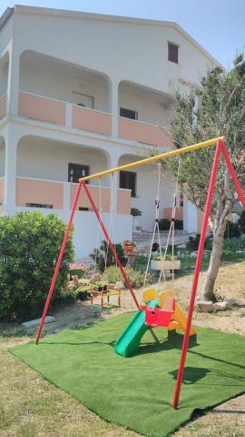 Drodzy Goście, witamy w apartamentach Marina w spokojnej części miasta Pag. Apartamenty Marina są podzielone na 3 gwiazdki i znajduje się zaledwie 15 metrów od morza! Oferujemy trzy apartamenty o różnych rozmiarach dla dwóch do pięciu osób. W Marina Apartments znajdziesz wszystko, czego potrzeba na udane wakacje; parking, grill, telewizja satelitarna, bezpłatny bezprzewodowy dostęp do Internetu, przestronny ogród dla beztroskiej zabawy dla dzieci oraz piękny widok na morze i balkony. Witamy w mieście Pag, mieście znanym z wyjątkowej koronki, pysznej jagnięciny, sera i soli, ale także na tajemniczej kamienistej powierzchni, takiej jak Księżyc. W mieście pełnym kulturalnych i historycznych zabytków, unikalnej kultury i obyczajów oraz pięknych plaż.