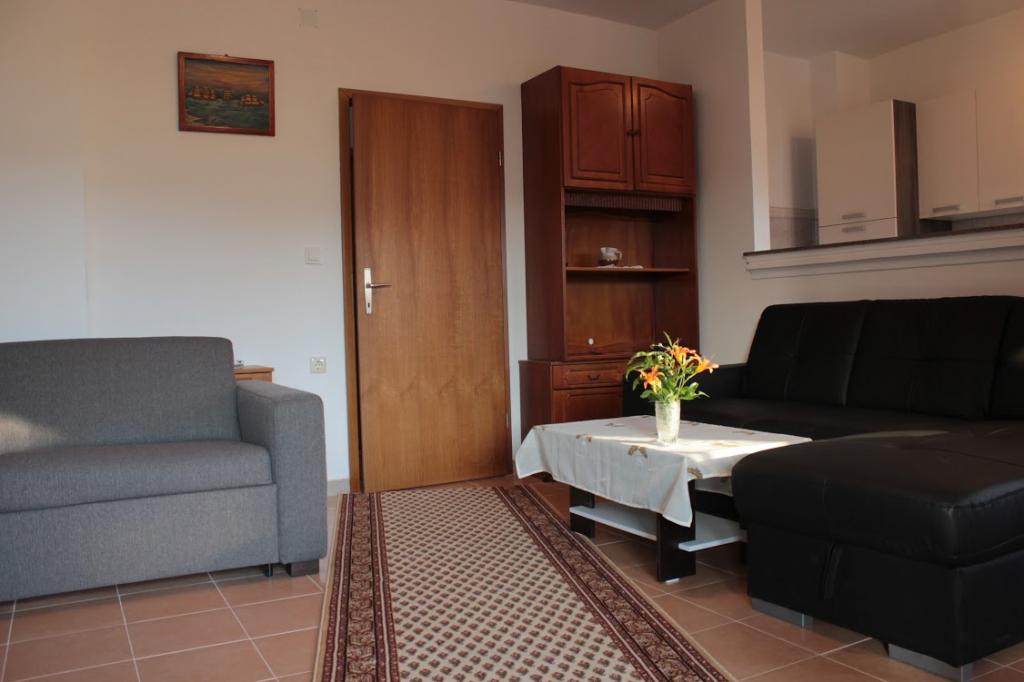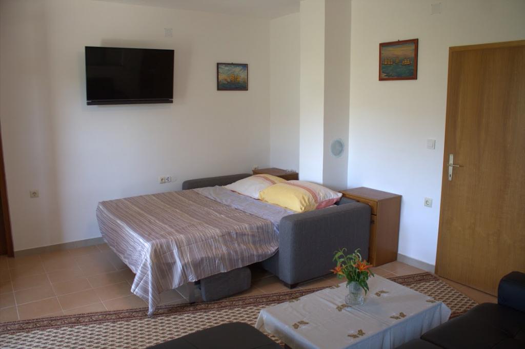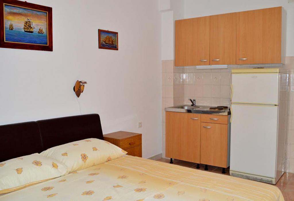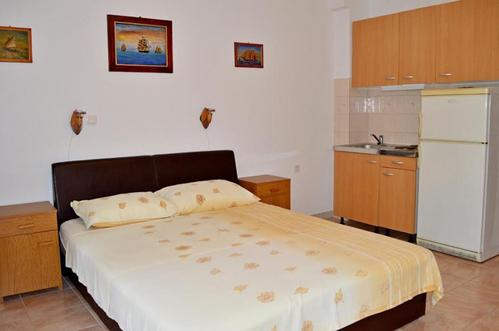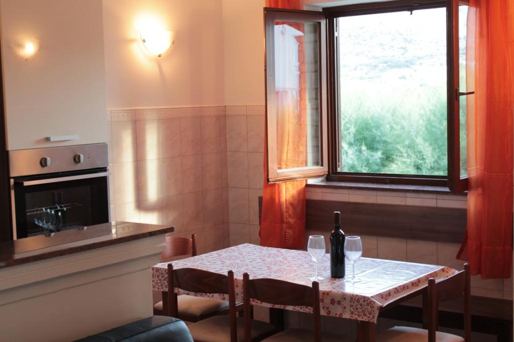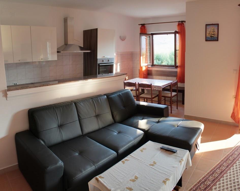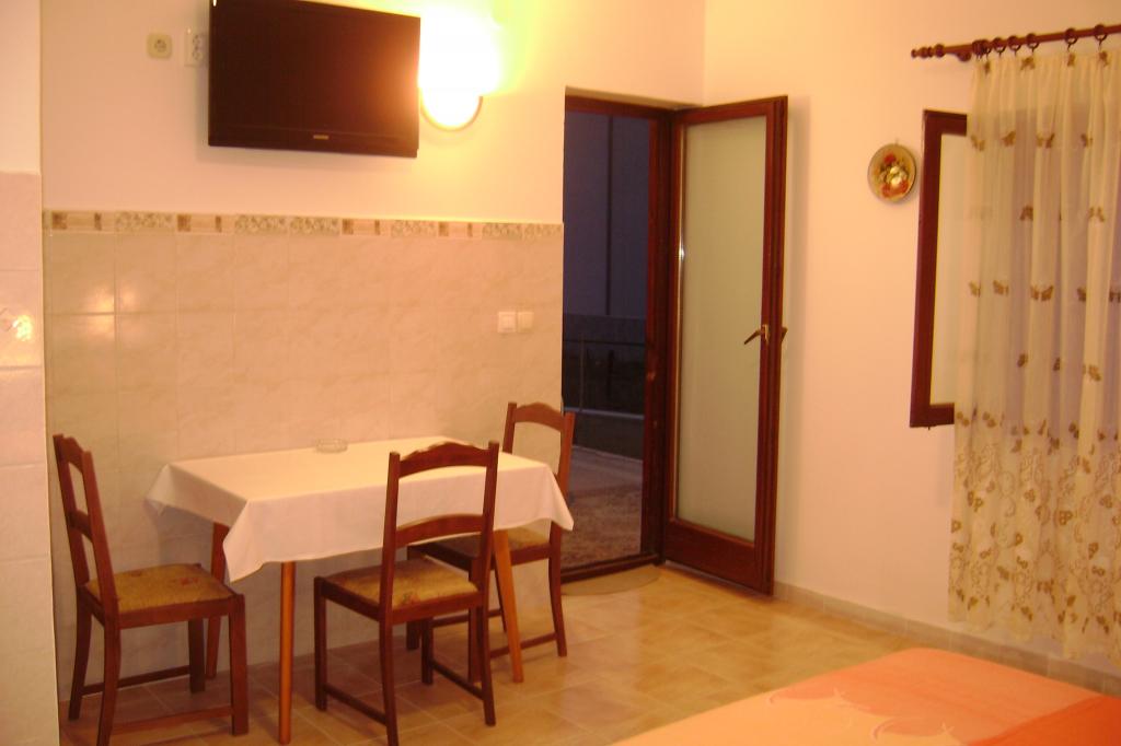 W miejscowości Pag znajdują się trzy apartamenty typu studio: pokoje z kuchnią, łazienką oraz duży apartament dla 4 osób (2+2). Dwa apartamenty typu studio znajdują się na parterze, a jeden apartament typu studio na pierwszym piętrze dużego domu rodzinnego. Położony 10 minut spacerem od głównego placu miasta i piętnaście minut od głównej plaży miejskiej. Apartamenty znajdują się w bardzo cichym i spokojnym miejscu otoczonym ogrodami, przyrodą i zielenią odpowiednim dla gości pragnących ciszy i spokoju. Apartamenty mają powierzchnię 30 metrów kwadratowych dla dwóch osób, mają jedną sypialnię, kuchnię i łazienkę z prysznicem, przed wejściem do mieszkania znajdują się małe tarasy. Apartamenty wyposażone są w TV, telewizję satelitarną i łącze internetowe, apartament na pierwszym piętrze posiada klimatyzację. Na parterze dużego domu rodzinnego znajduje się mieszkanie o powierzchni 60 metrów kwadratowych z jedną sypialnią, dużą kuchnią, dużym salonem z podwójnym łóżkiem dla czterech osób (2+2). Przed apartamentem znajduje się mały taras.