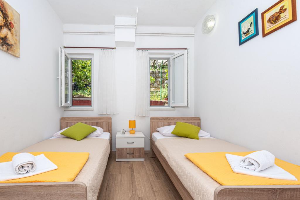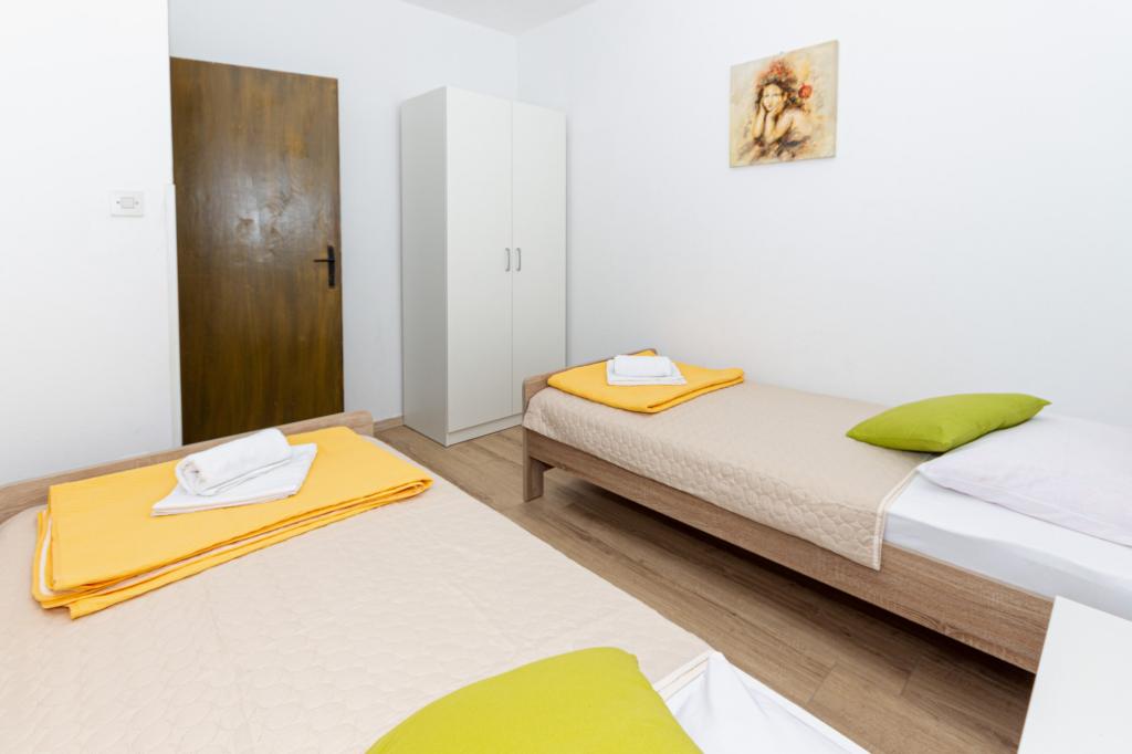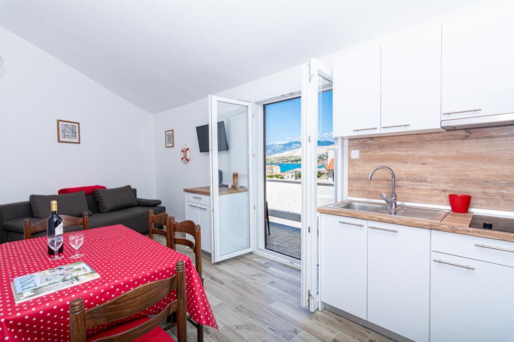 Apartamenty znajdują się w miejscowości Pag w obszarze Lokunja, zaledwie 200 metrów od morza i 300 metrów od głównej plaży. Do centrum miasta, gdzie znajdują się sklepy, poczta, kawiarnie i bary, można dojść w niecałe 10 minut. Tylko 25 km od Novalji-Zrć i 50 km od Zadaru. Ten dom ma 4 jednostki zakwaterowania. W jednym z nich mieszkają właściciele domu (Ivo i Jelica) i są do Państwa dyspozycji. Jeden apartament znajduje się na pierwszym piętrze domu i posiada balkon z pięknym widokiem na morze. Na parterze domu znajdują się jeszcze dwa apartamenty z tarasami. Dom posiada duże podwórko, ogród i strzeżone miejsce parkingowe, a także możliwość grillowania. Powitanie.