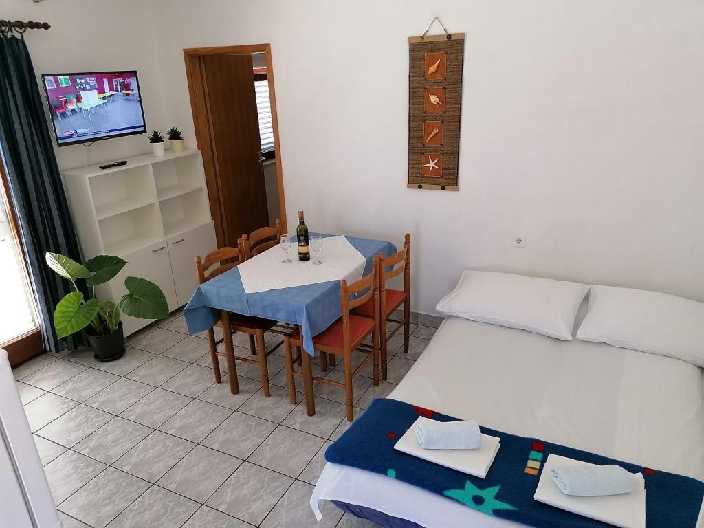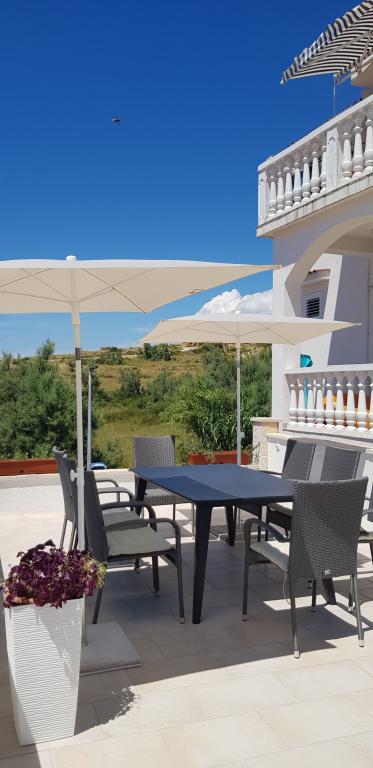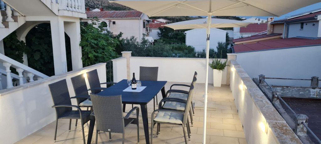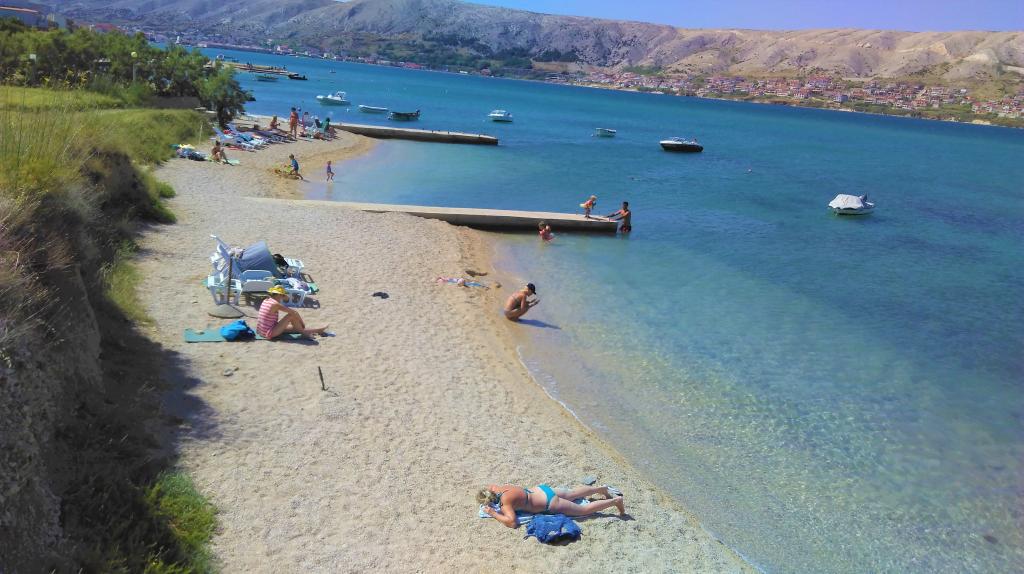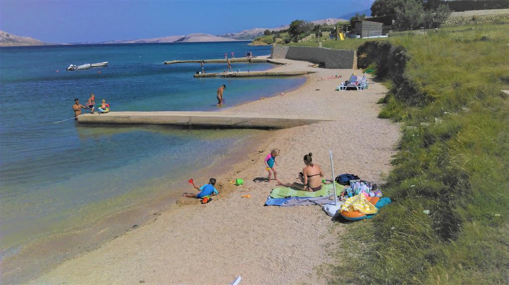 Gospodarze bardzo sympatyczni, apartament (mieliśmy na 1 piętrze) czysty z ładnym tarasem i widokiem na morze, spokojna okolica. Łagodne dojście do plaży z zegarkiem w ręku 3 minuty. Plaża ładna (zdjęcia oddają w 100% opis podany na stronie), drobny żwir. Do Pag spacerem 25 minut wzdłuż morza, bardzo malownicza miejscowość.Jak najbardziej polecam, wybór na wakacje doskonały.