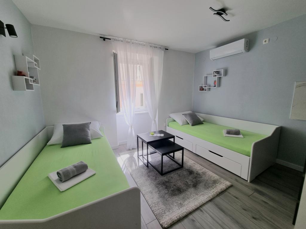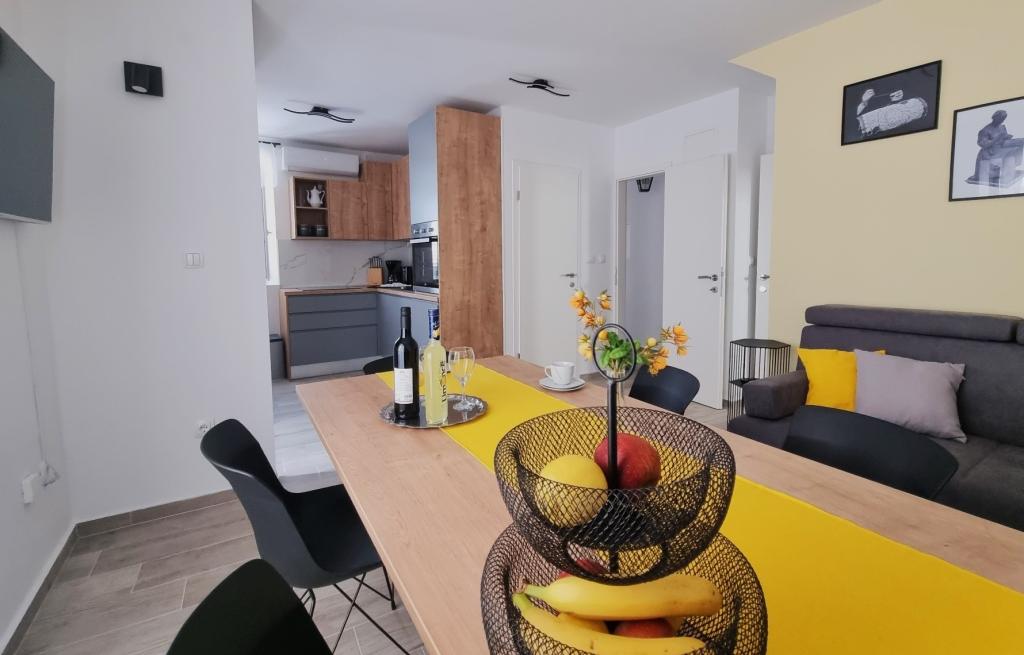Nowo wyremontowany dom położony jest w samym centrum miasta Pag, w bezpośrednim sąsiedztwie głównego placu miasta. Zakwaterowanie dla 4 osób znajduje się na dwóch piętrach i obejmuje: pokój dzienny z kuchnią i łazienką na parterze, dwie sypialnie i łazienkę na pierwszym piętrze. Dom znajduje się 500 m od plaży Prosika.