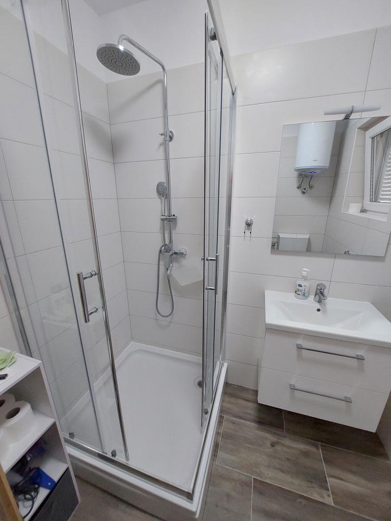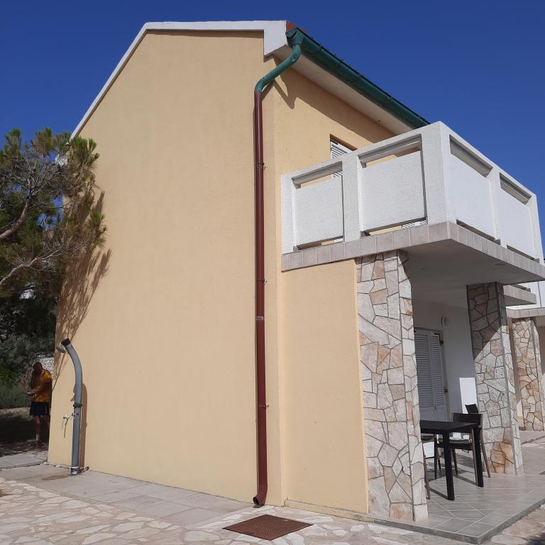 Rodzinny dom wakacyjny z dużym podwórkiem o powierzchni 300 m2 w spokojnej zatoce (Vodice) w miejscowości Pag. Dom jest przystosowany do komfortowego pobytu rodzin z dziećmi. Dom nadaje się zarówno dla młodych, jak i starszych osób. Mieszkasz sam w domu i nie ma innych mieszkań. Posiada dwie sypialnie (w pierwszej łóżko 200x180 cm, w drugiej dwa łóżka 200x80 cm), salon, zupełnie nową kuchnię oraz dwie łazienki. Na dużym podwórku znajduje się prysznic na świeżym powietrzu i grill. Za domem znajduje się mały sosnowy lasek. W salonie znajdują się dwa łóżka o wymiarach 190x150 cm. Cała pościel i ręczniki są wliczone w cenę. Idealne miejsce dla wszystkich miłośników przyrody, spokoju, wolności i wszystkiego, co związane z morzem, którzy chcą spędzić wysokiej jakości i ciekawe wakacje. Odległość do większych miast, takich jak Zadar, wynosi 40 km. Odległość do plaży wynosi 80 metrów.