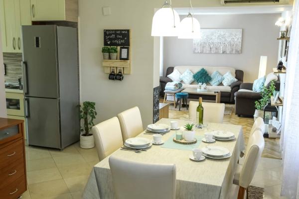 Zapraszamy do naszego przestronne, świeżo wyremontowane mieszkanie znajduje się w doskonałej lokalizacji, blisko do wszystkich udogodnień, ale w cichej okolicy, która będzie niezapomniane wakacje. Zamknij górną cel - Zadar, Pula, Šibenik, Vransko jezero, Park Narodowy Kornati, Krka, Jeziora Plitwickie ... to, co małe miasto Pakostane atrakcyjnej destynacji dla turystyki rodzinnej. Nasza oferta obejmuje: dwie sypialnie, pokój dzienny, kuchnia, jadalnia, łazienka i przestronny taras.