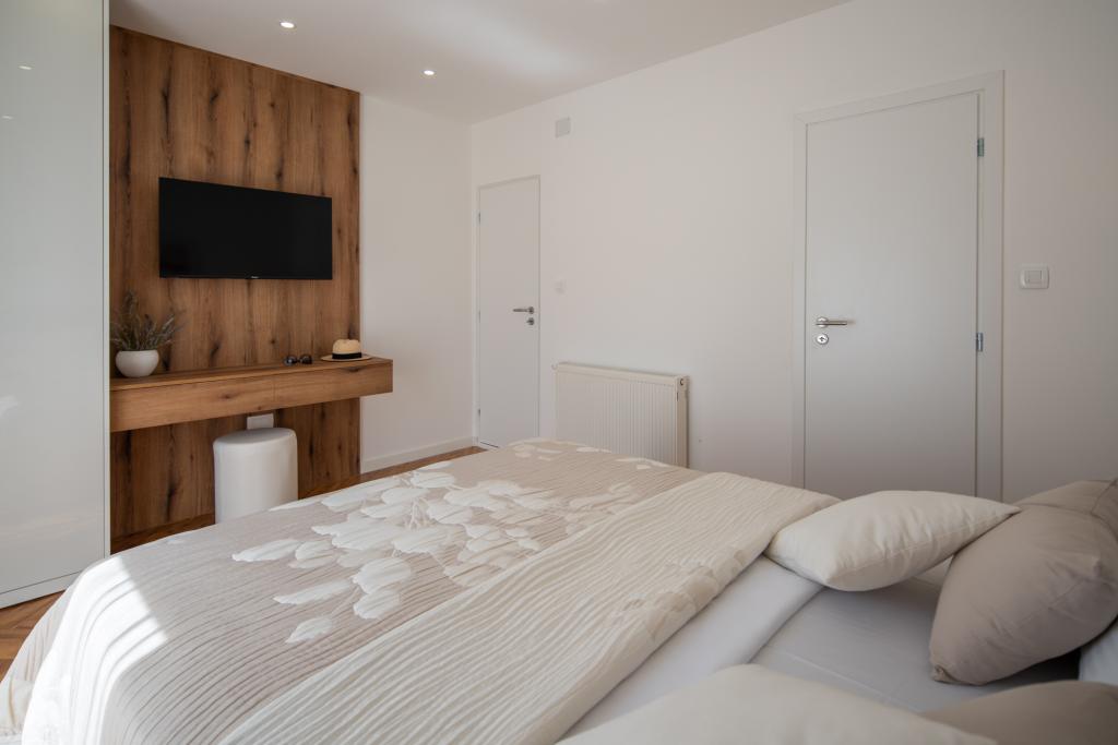Nowoczesny i nowocześnie wyposażony apartament GARDEN znajduje się na parterze budynku i oferuje swoim gościom, którzy są jednocześnie jedynymi gośćmi budynku, wypoczynek w oazie zieleni z dużym ogrodem i grillem. Mieszkanie ma 3 sypialnie z łóżkiem małżeńskim, gdzie każdy pokój ma własną łazienkę i telewizor, w pełni wyposażoną kuchnię, pokój dzienny i dwa tarasy. To jest 10 minut od centrum miasta i plaż na piechotę. Mieszkanie jest idealną bazą wypadową do odkrywania bogatych możliwości, jakie oferuje ta destynacja.