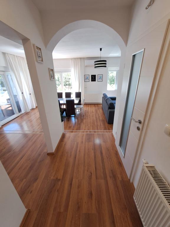 Mieszkanie z prywatnym podwórkiem „Meri” znajduje się w Pakoštani; w idealnej pozycji; ponieważ znajduje się dokładnie pośrodku pomiędzy morzem a jeziorem PP Vrana, podobnie jak pośrodku pomiędzy pięknymi miastami Zadar i Šibenik. Budynek z ogrodem i dziedzińcem od strony słońca emanuje prywatnością i spokojem. Zaprasza do odpoczynku i przyjemnego towarzystwa. Zawiera 3 sypialnie, duży salon z telewizją satelitarną, w pełni wyposażoną kuchnię; jadalnia i 2 łazienki z prysznicem lub wanną. Klimatyzowane apartamenty z tarasem, grillem, placem zabaw dla dzieci, prywatnym parkingiem i Wi-Fi. Niezależnie od tego, czy pragniesz odpoczynku od codzienności i urbanizacji, czy też aktywnego wypoczynku sportowego, codziennych wycieczek po NP, PP, miejscach historycznych, poczujesz się tu, jakbyś był we właściwym miejscu. Czekamy na Ciebie!
