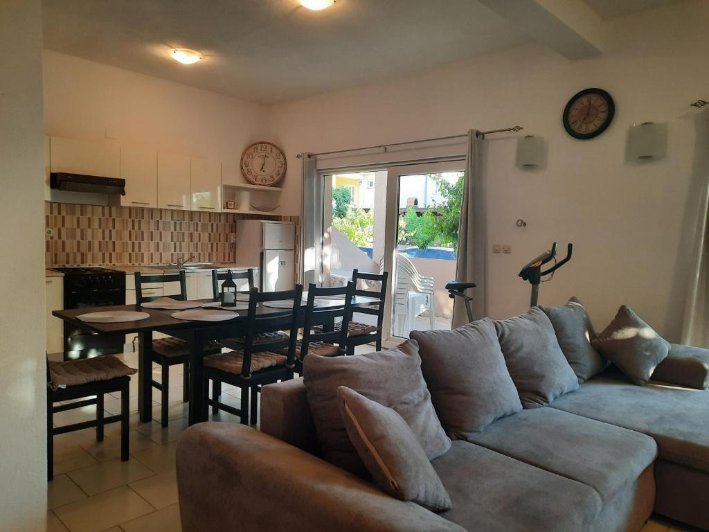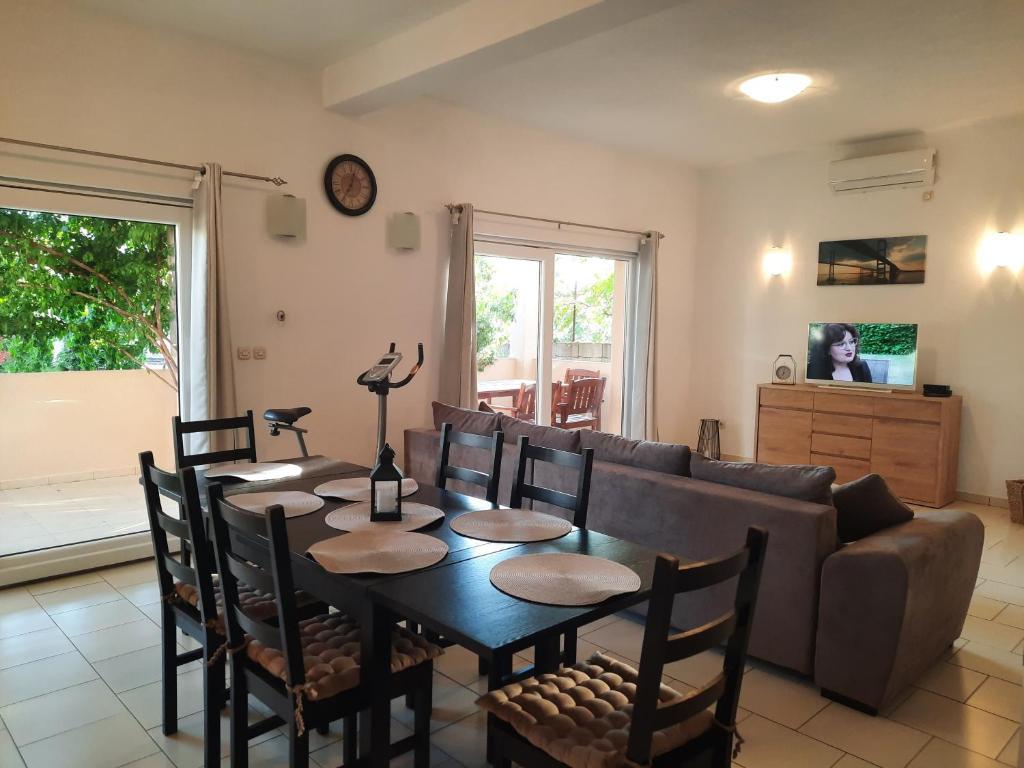 Apartament oferuje zakwaterowanie dla łącznie 5 osób. Posiada dwie sypialnie – każda z łóżkiem małżeńskim (160x200) – oraz dodatkowe łóżko dla dziecka do 12 lat w salonie. Pokoje wyposażone są w pościel i ręczniki! W salonie znajduje się telewizor Smart TV z dostępem do serwisów streamingowych (takich jak Netflix), a kuchnia jest w pełni wyposażona (lodówka, kuchenka, piekarnik, czajnik, zmywarka, mikrofalówka, naczynia). W apartamencie znajdują się dwie łazienki i pralka.